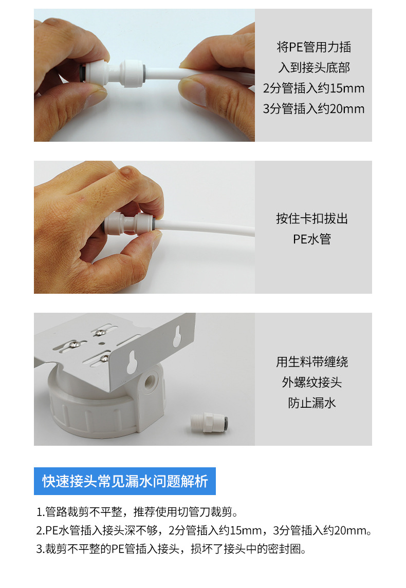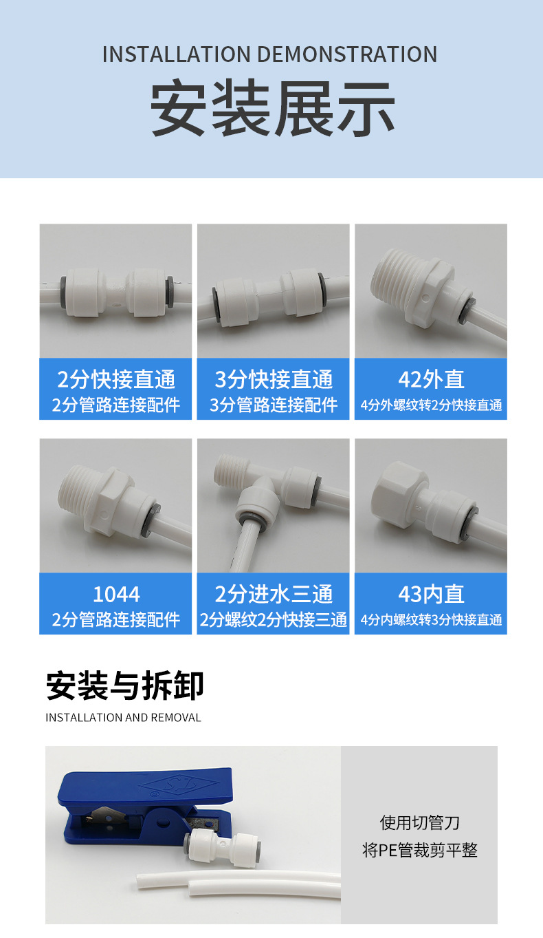 304不锈钢水龙头配件2分二分pe接水管接头净水器家用直饮机过滤器