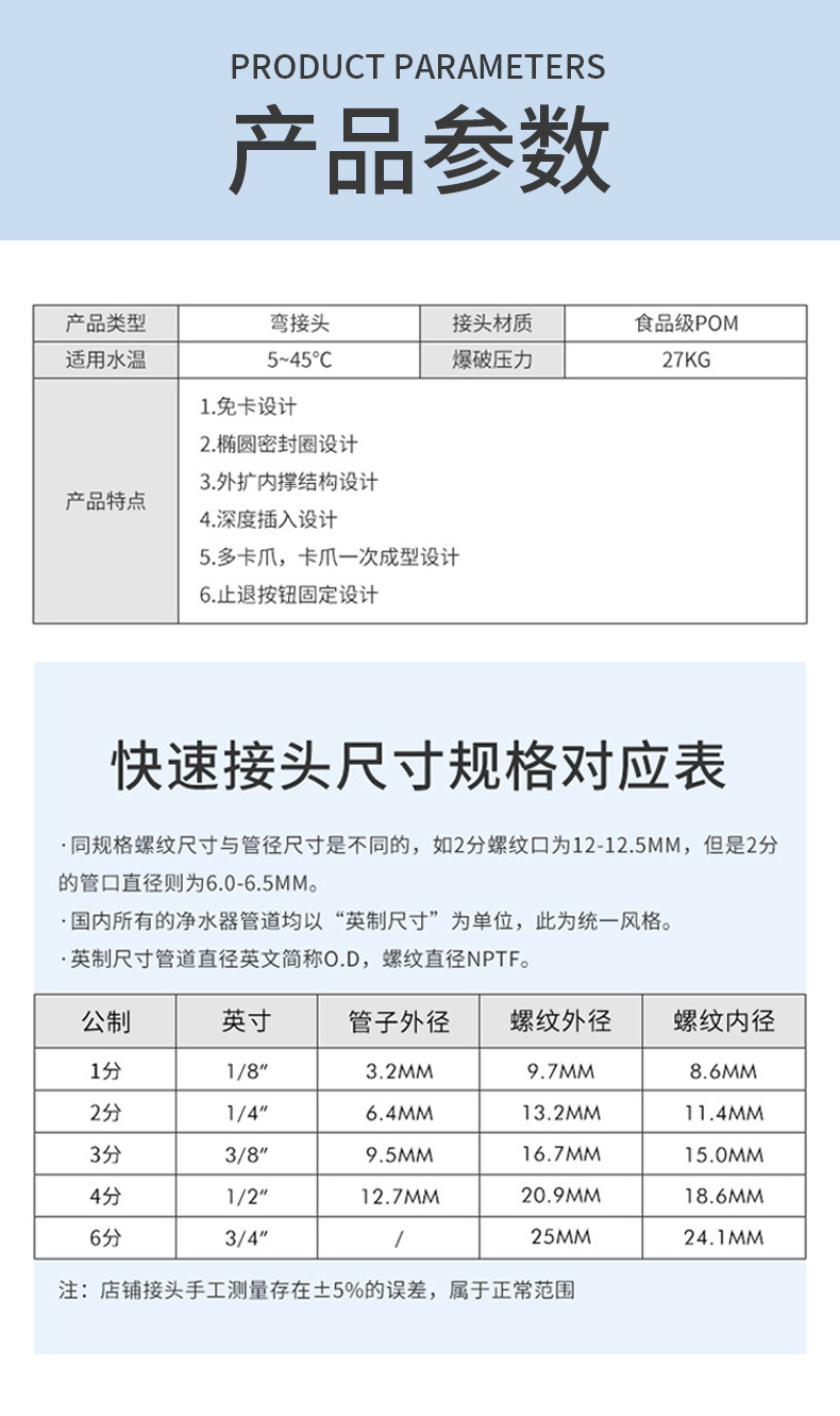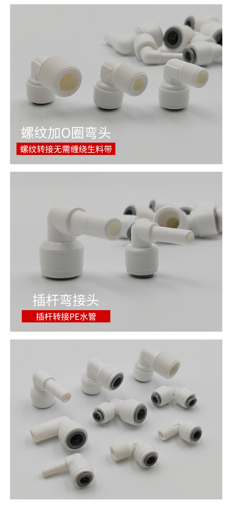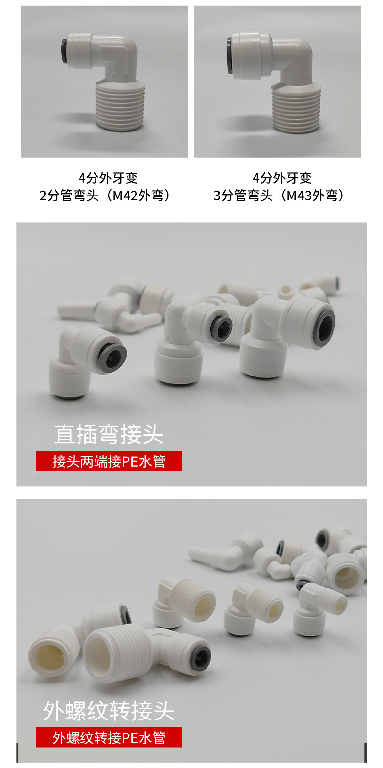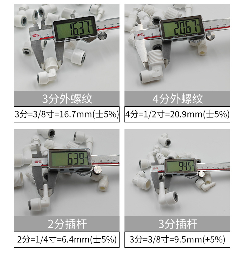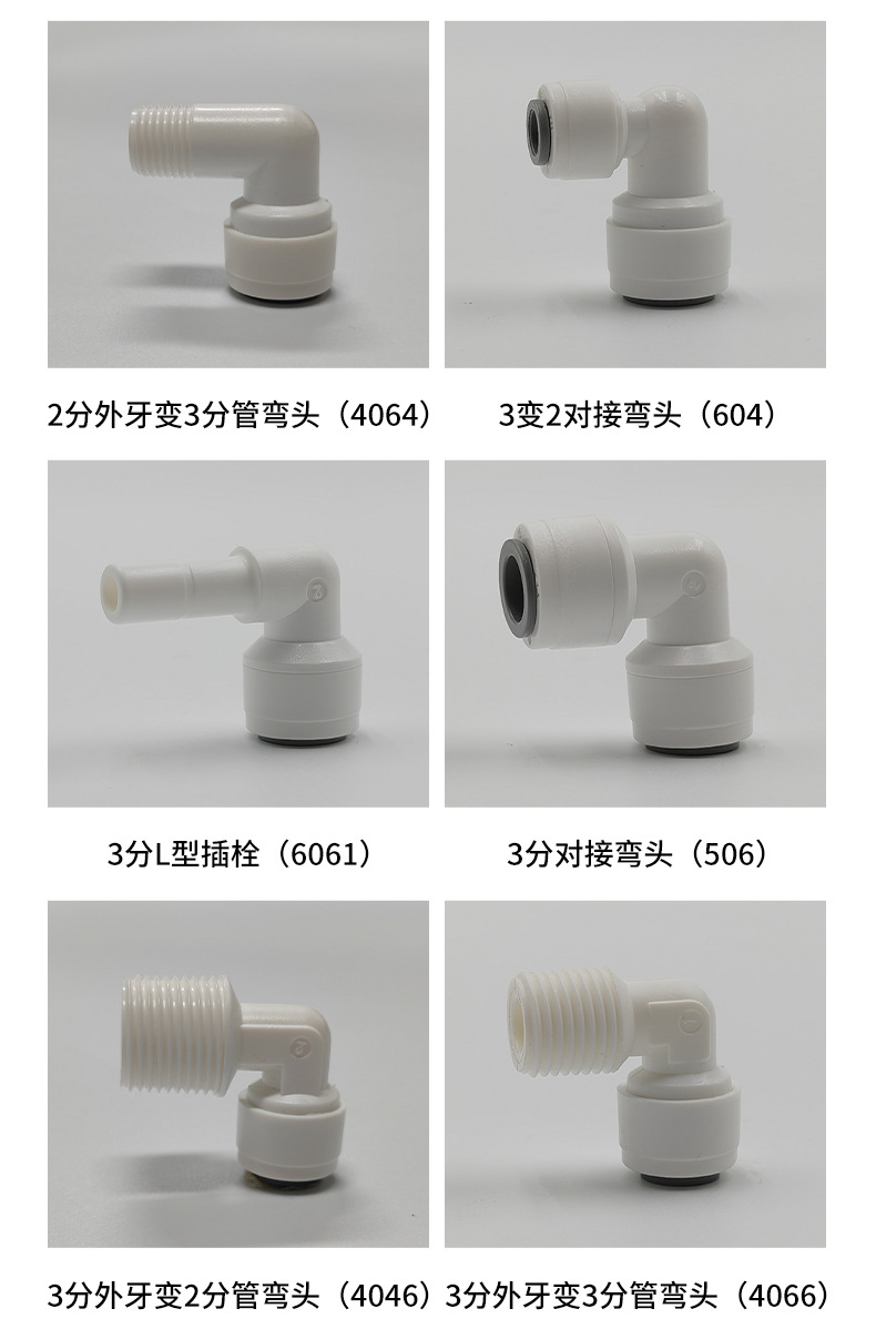 净水器63N转接头6分外螺纹转3分快接弯头25MM外牙转3/8PE管快插头