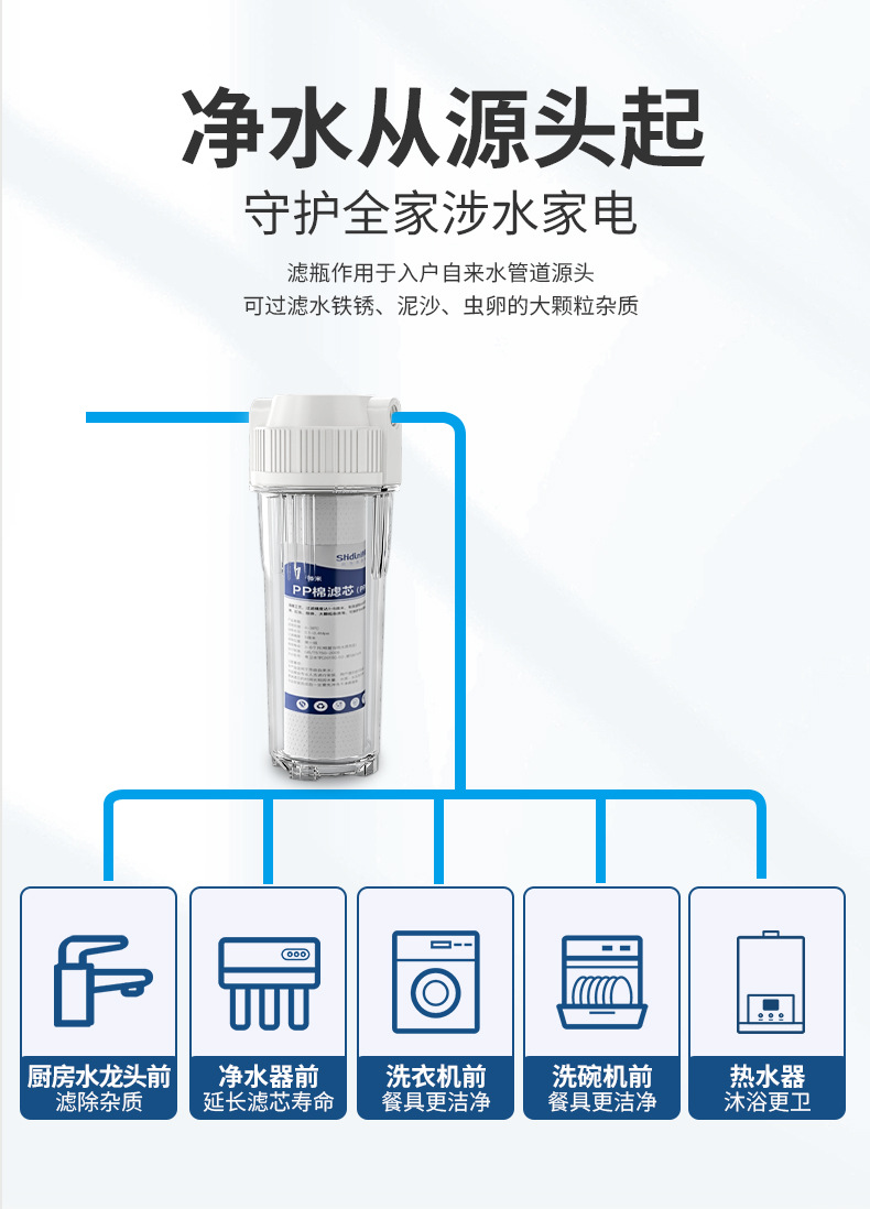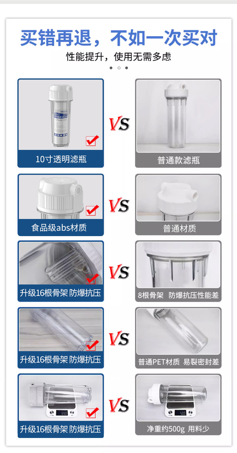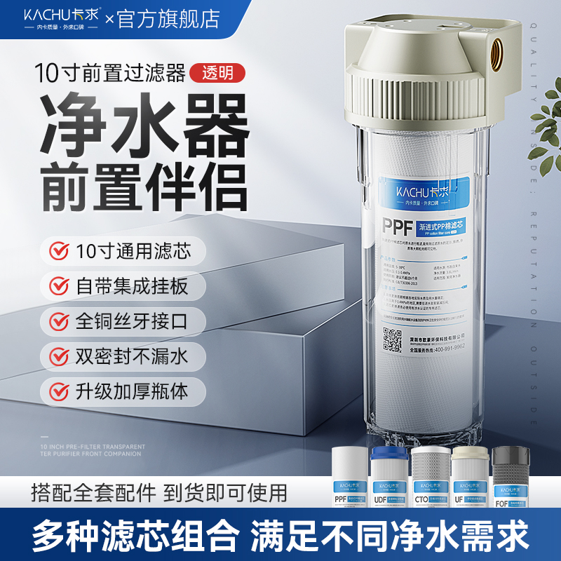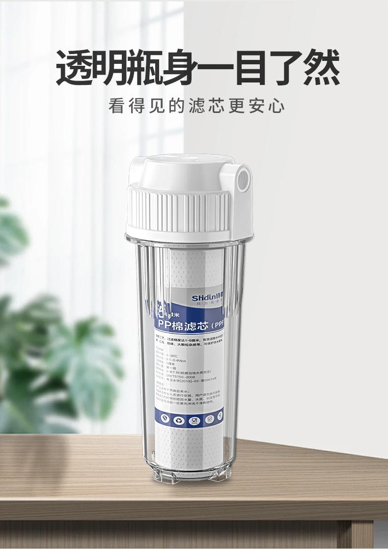 净水器伴侣10寸前置过滤器家用厨房透明滤瓶自来水粒炭pp棉滤芯