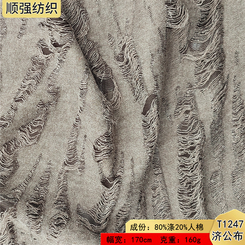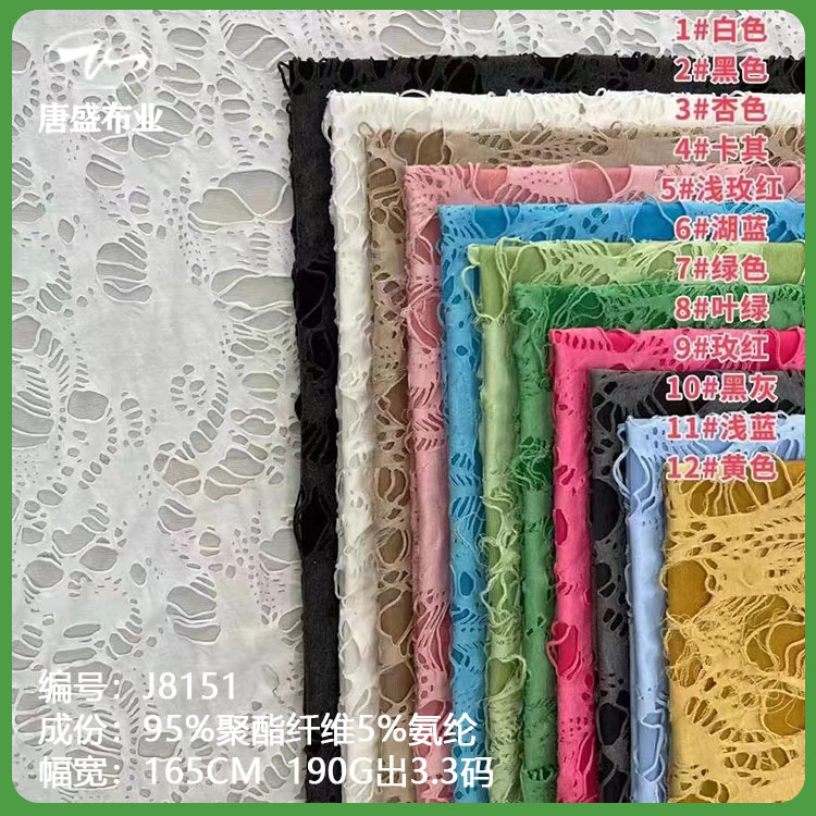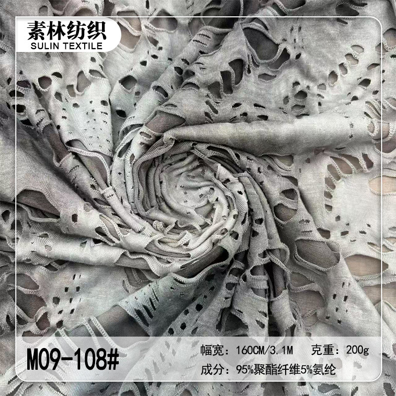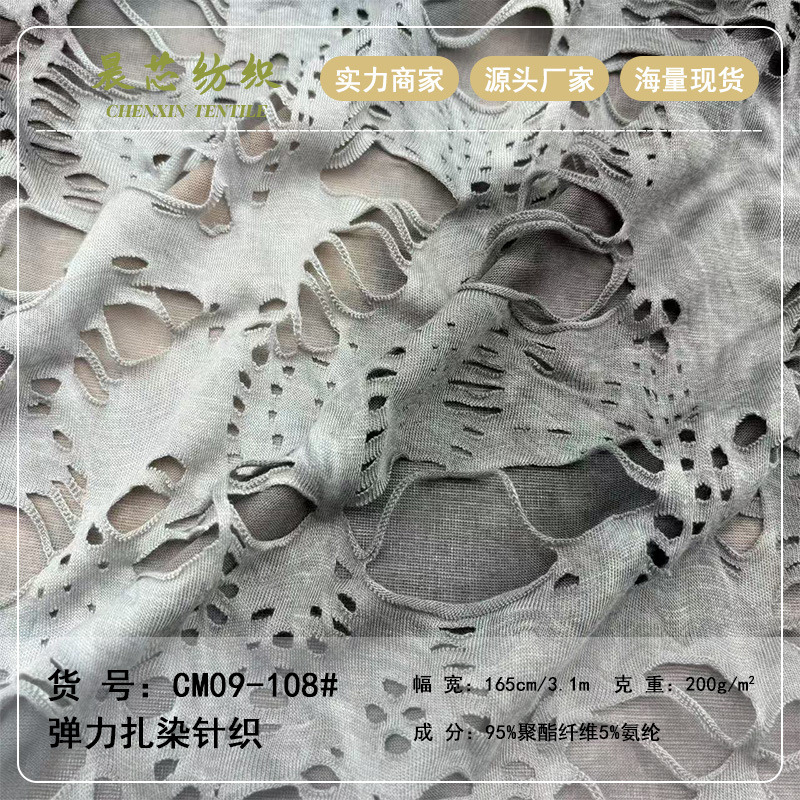 160g済公布ニットジャカードTR破れ穴乞食布生地春夏女装ファッション上着tシャツ生地