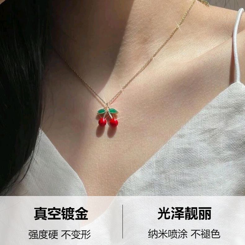 クロスボーダーチェリーネックレスレディースライトラグジュアリーハイエンドフルーツジルコン銅ペンダント鎖骨チェーンシンプルでファッショナブルな気質ネックレス