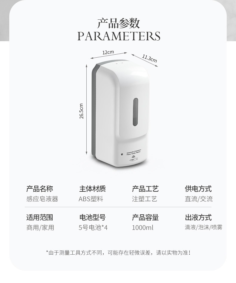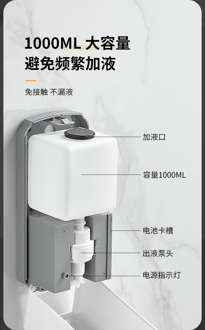 镜后皂液器 1000毫升自动感应皂液器泡沫泡沫皂液器