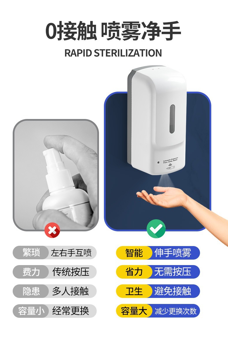 自動誘導手指消毒機病院学校公衆場所非接触 1000 ミリリットルアルコールスプレーソープディスペンサー