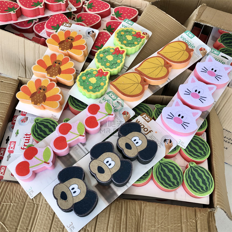 海外取寄せ品、カード1枚で3枚、漫画スポンジ、食器洗い用両面たわし、吸水性たわし