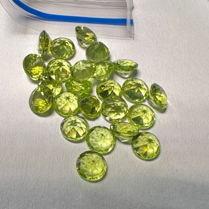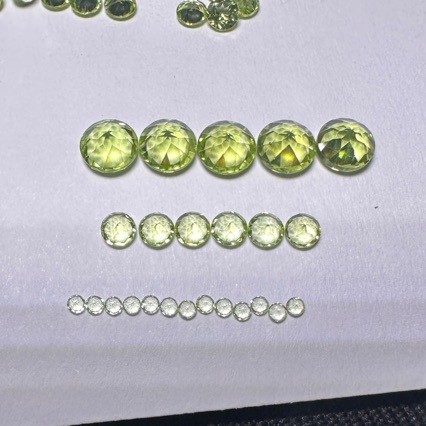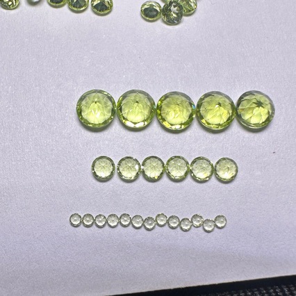 天然オリビン円形彫刻面の尖った底の0.9M M-5MMのアクセサリーの石