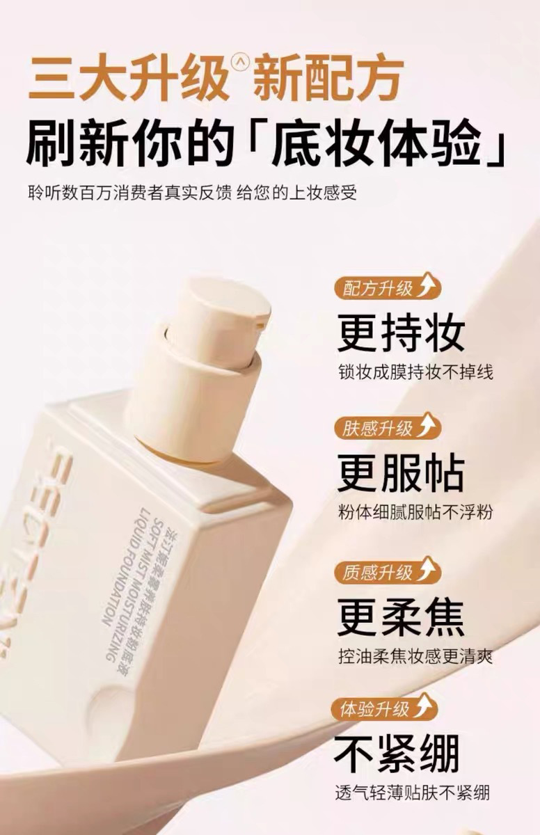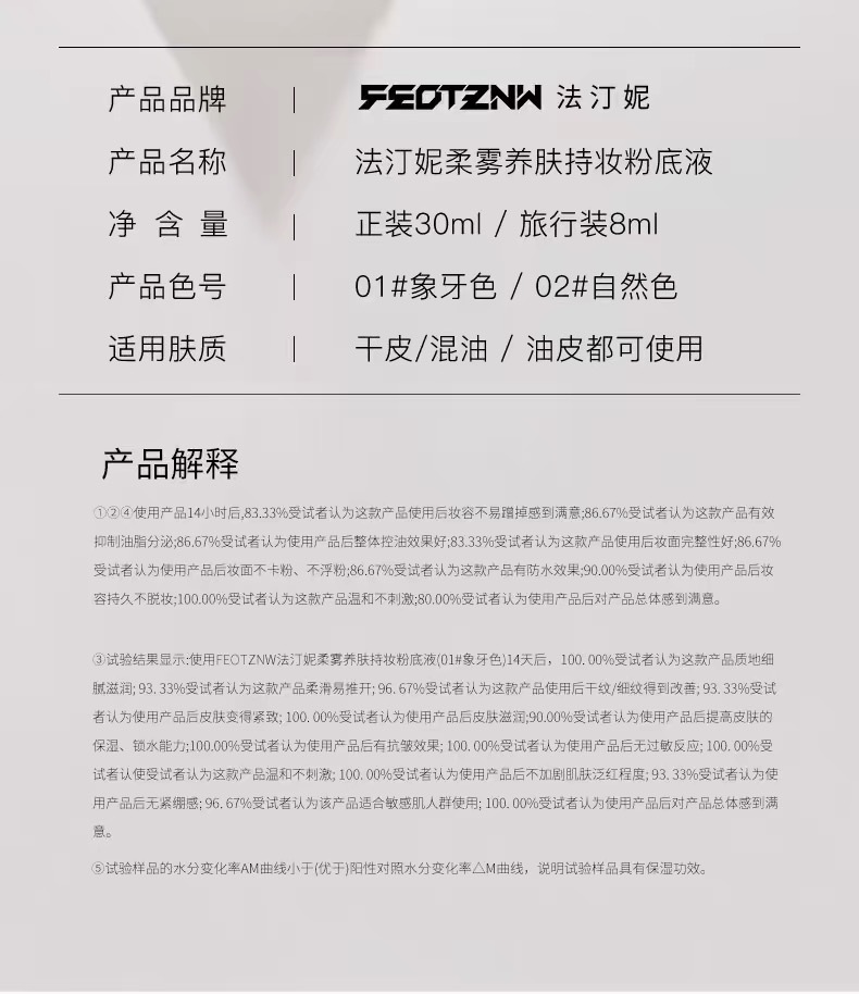 法汀妮升级版柔纱持妆粉底液持久不脱妆防水防汗遮瑕持妆粉底BB