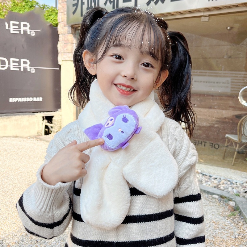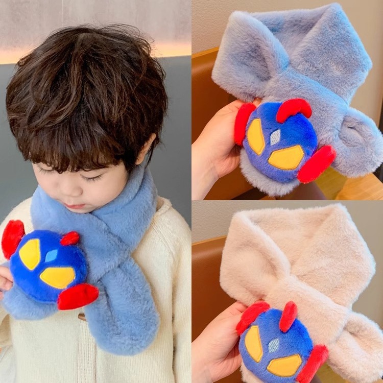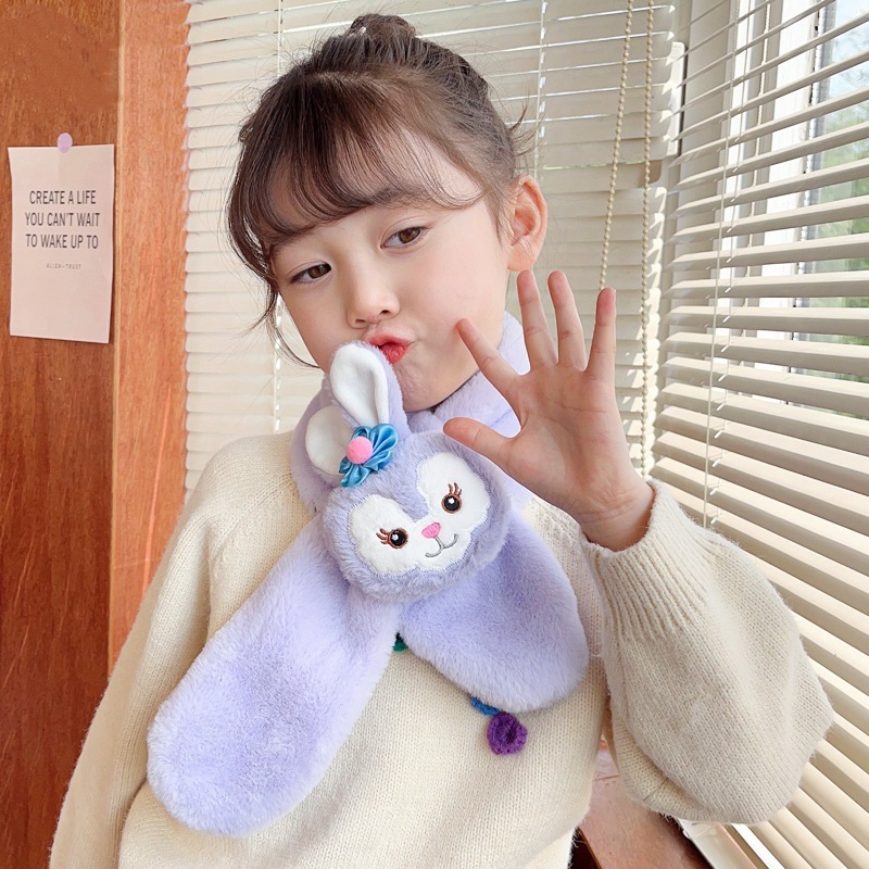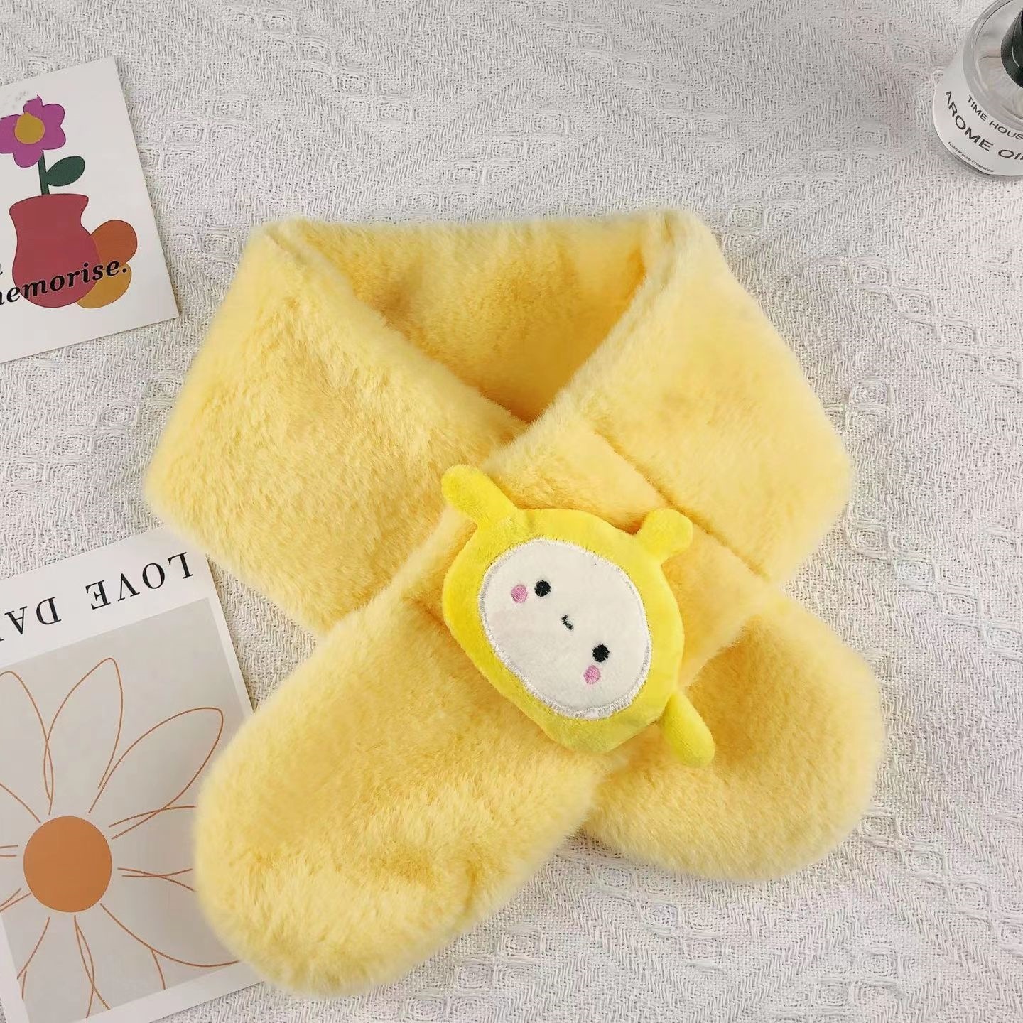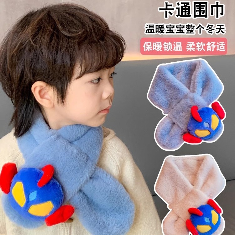2025 子供スカーフぬいぐるみ模造ウサギの毛皮秋冬かわいい漫画厚く暖かい男の子ベビーネックスカーフ卸売