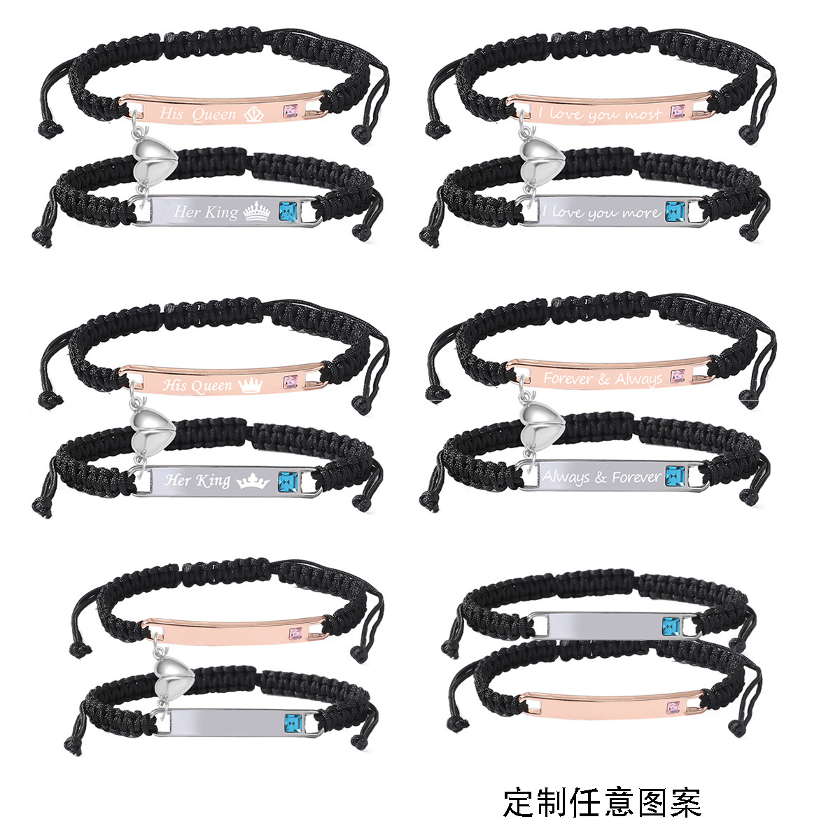 欧米で人気のカップル向け編み込みブレスレット、ネームプレート付き、心を繋ぐ磁気式永遠のカップルブレスレット、アクセサリーセット