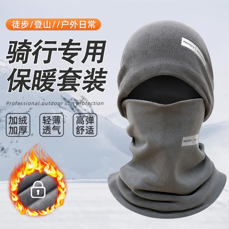 冬季加绒登山保暖面罩女防风爬雪山徒步滑雪护脸骑车围脖帽子套装