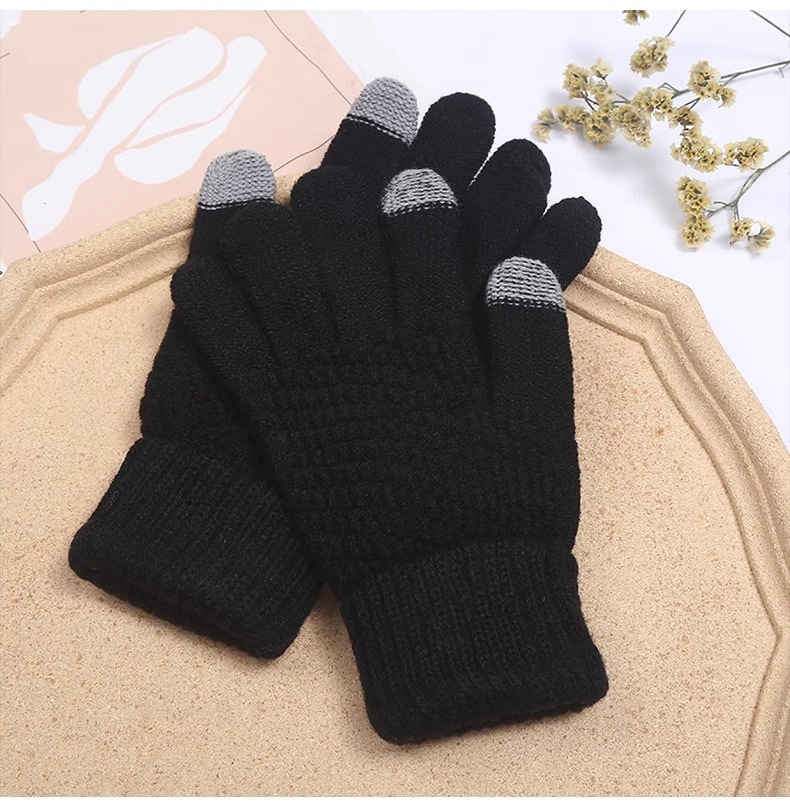冬に暖かく保つ学生用手袋、韓国版、シンプルな男性と女性、ベルベットと厚みのあるサイクリング5本指タッチスクリーン防寒綿手袋