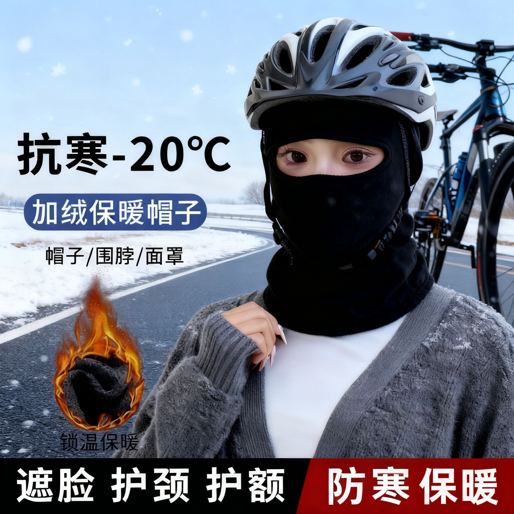 2025秋冬季骑行面罩套头帽子女电动车保暖口罩男户外防风围脖批发