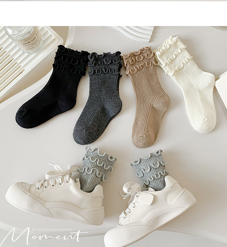 女の子の靴下の夏の薄いタイプの韓国版の子供は縁を巻いて靴下を積み上げます。
