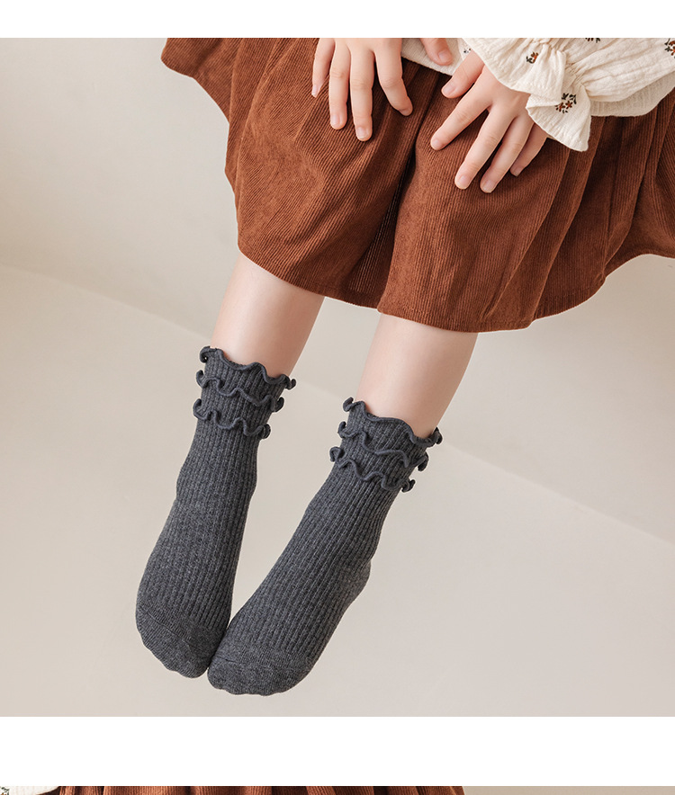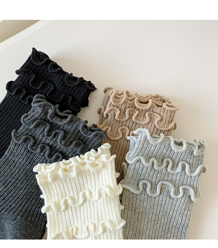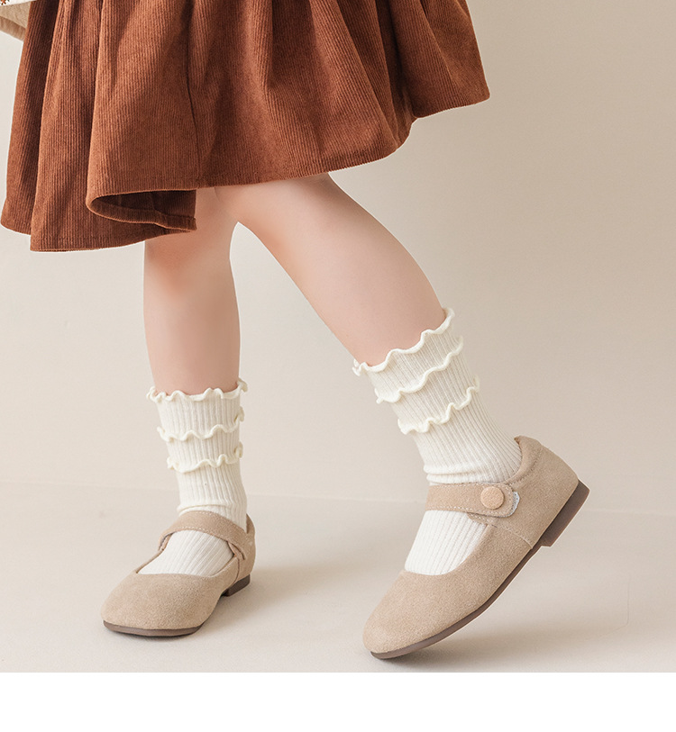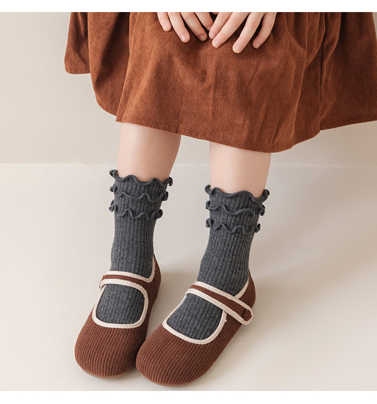 女の子の靴下春秋子供の韓国版の多層のキクラゲのレースの靴下の女の子のカレーの色の系の中で靴下のメーカーの卸売り