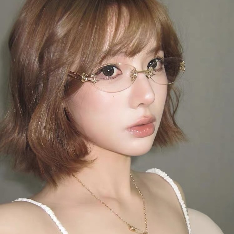 超軽量金糸無枠眼鏡女性高級感上品無枠平光鏡は近視の有度デジタル表示顔が小さい