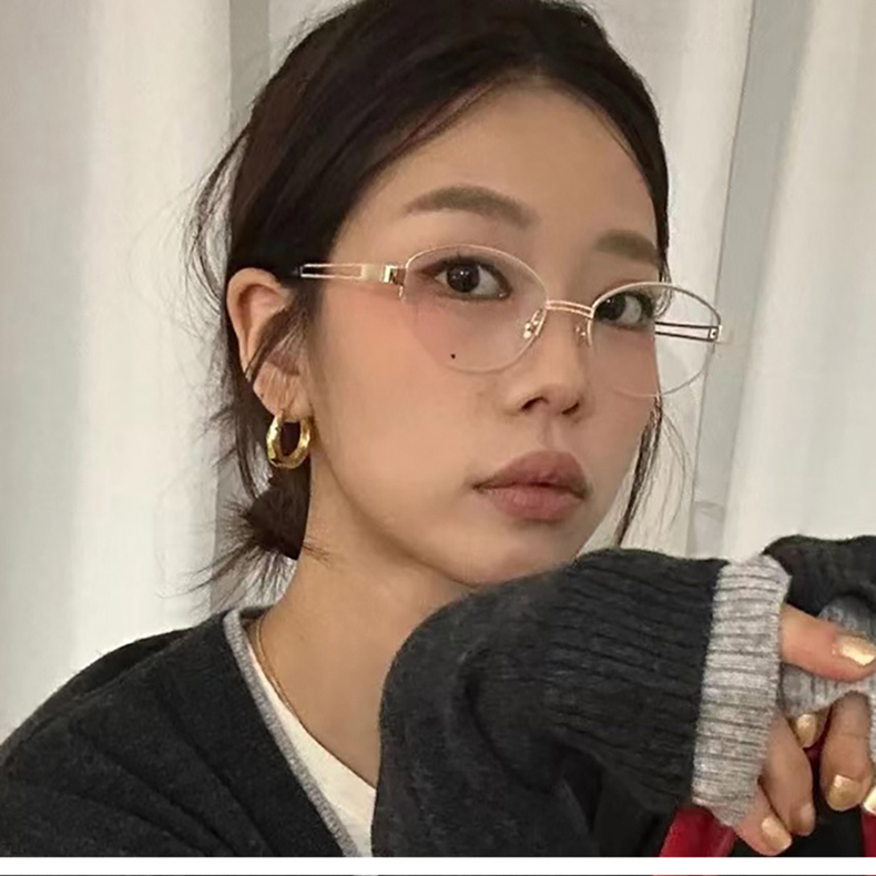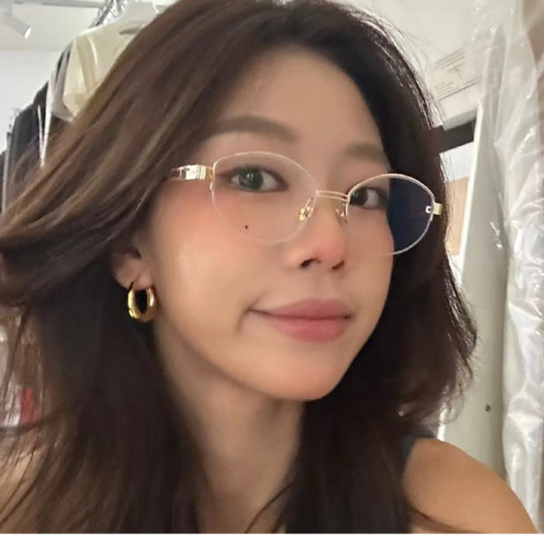 韩版复古无边框高质感金属椭圆金丝猫眼眼镜圆脸显瘦防蓝光平光镜