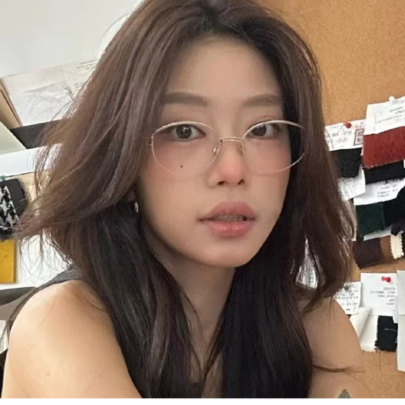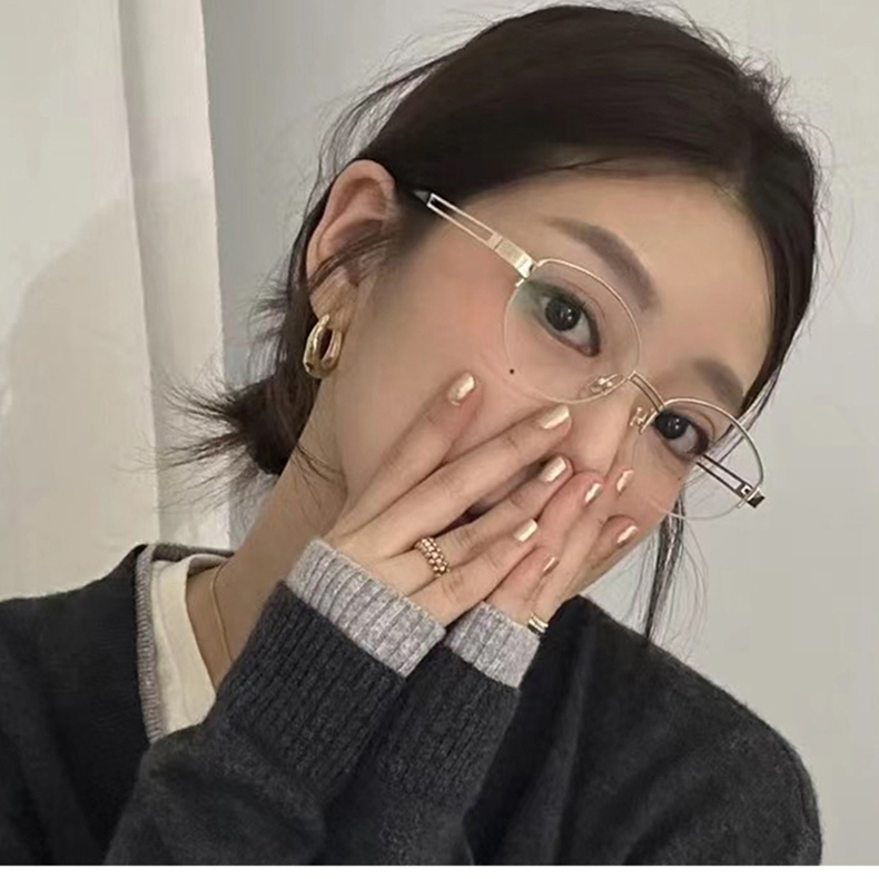 韩版纯欲风椭圆半框金属平光镜女方圆脸高级感可配近视防蓝光眼镜