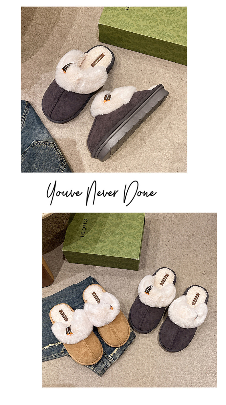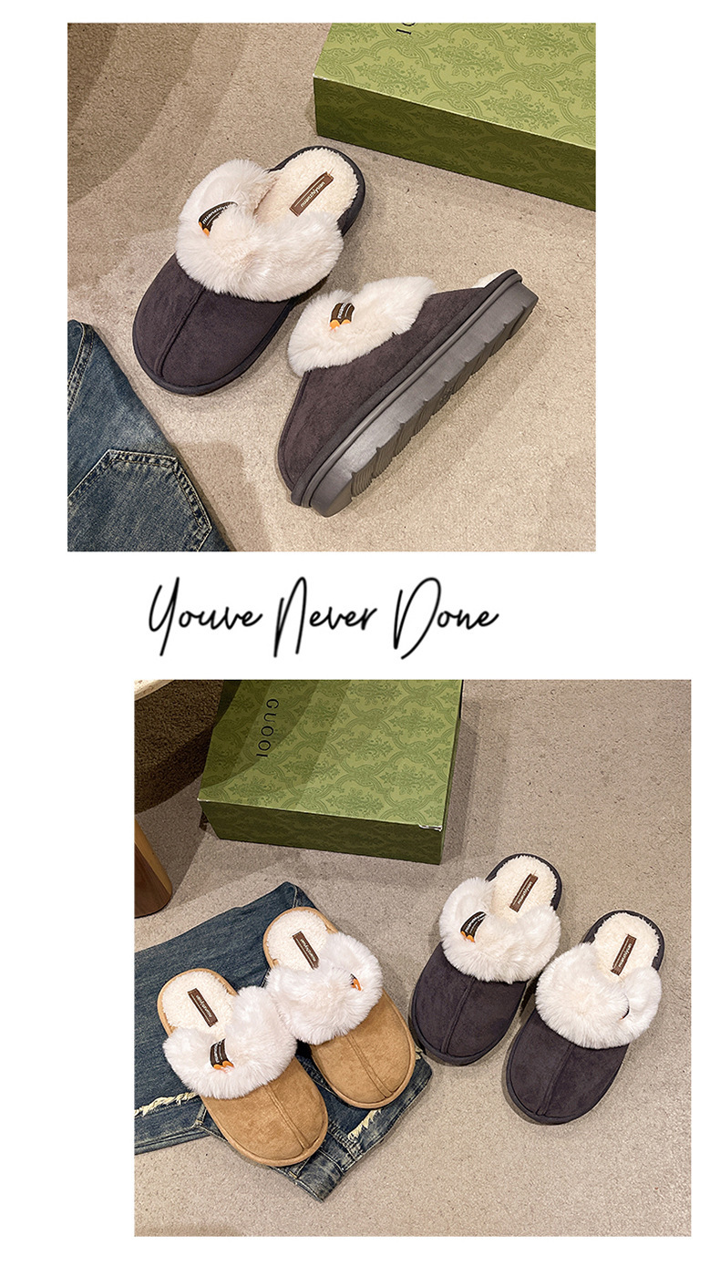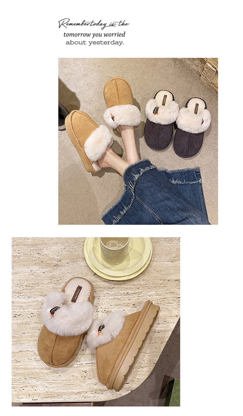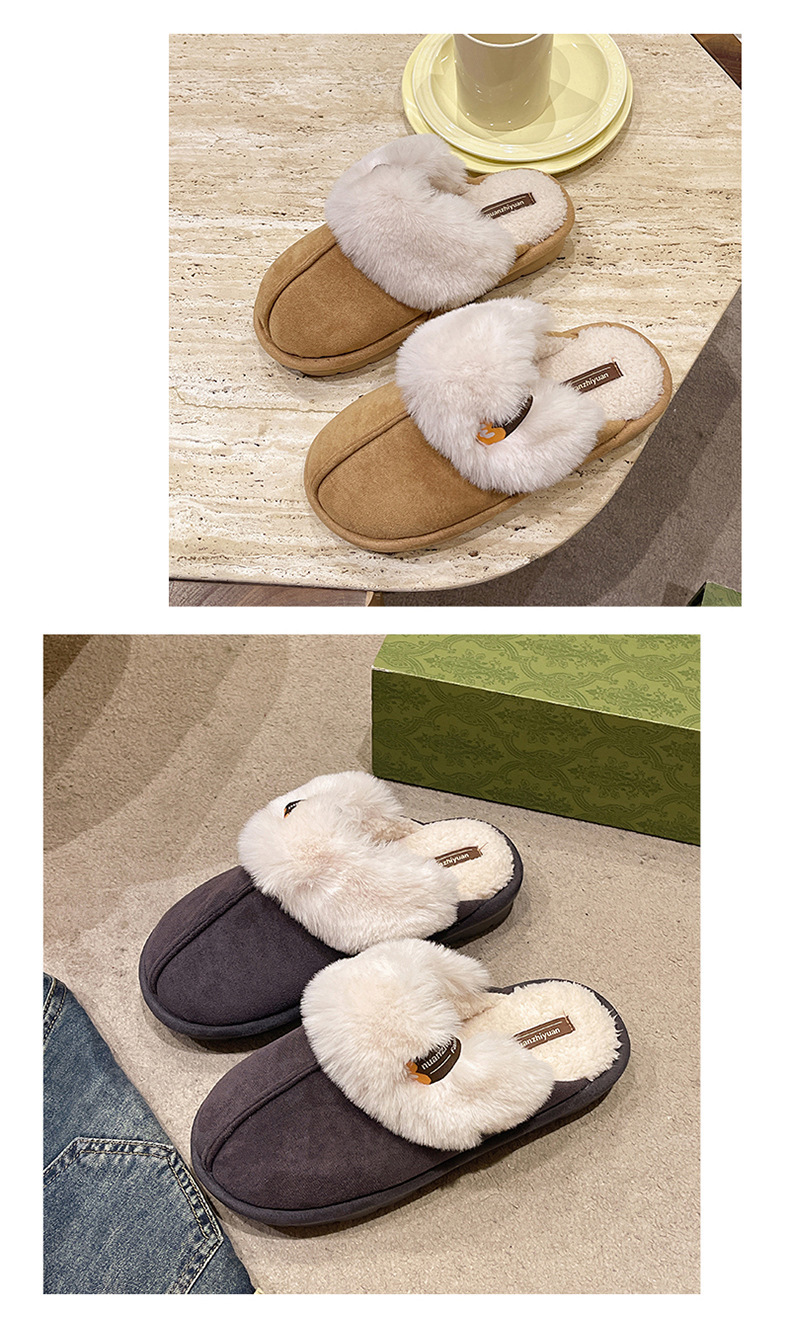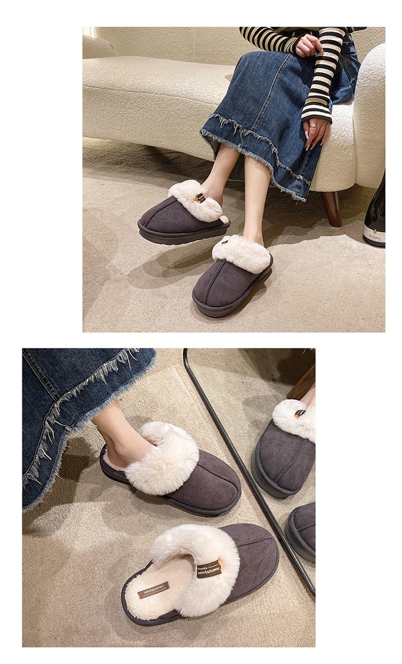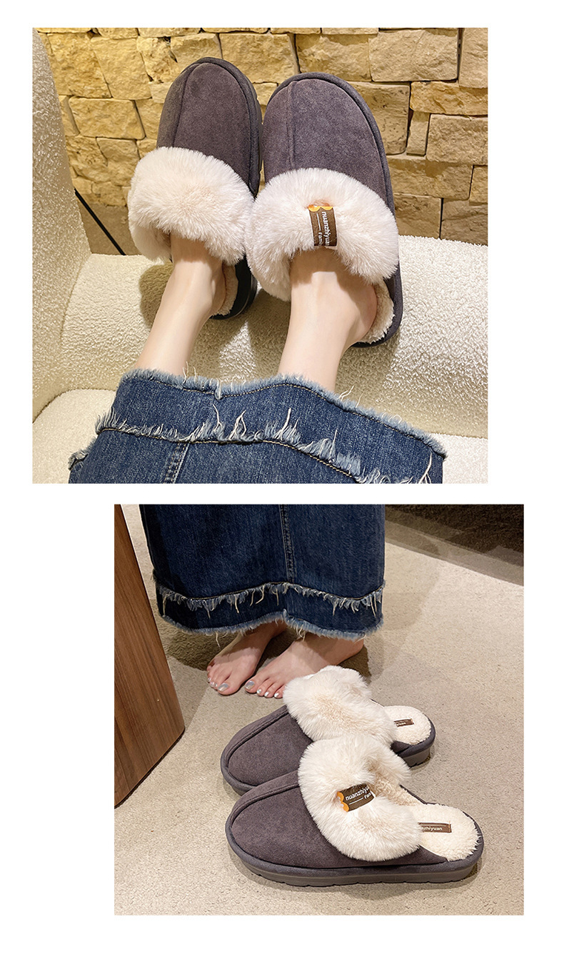 奇丹靴工場のスエードの綿のスリッパの女性の秋冬の新型の家の厚い底の滑り止めの外は毛のぬいぐるみの綿を着て女性を引きずります。