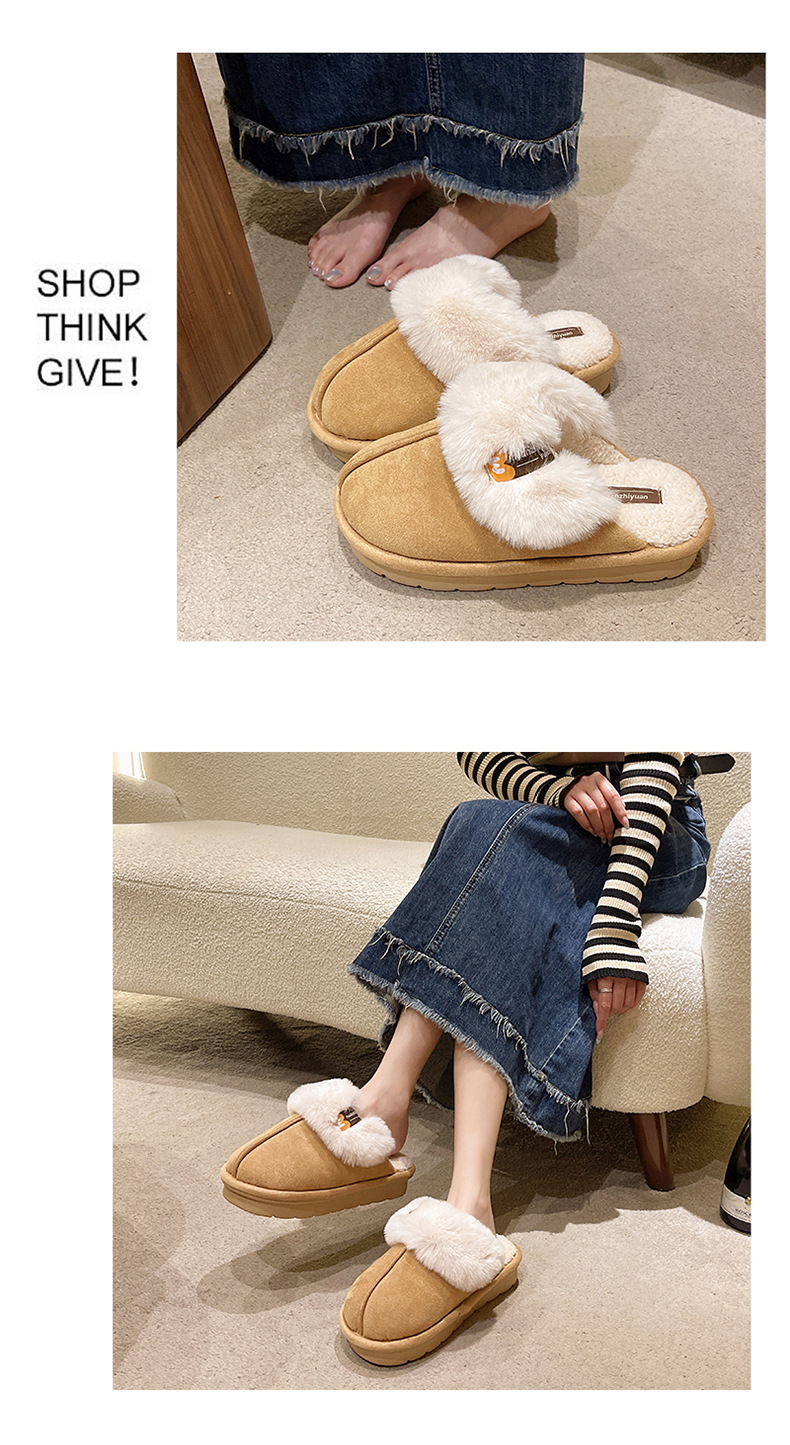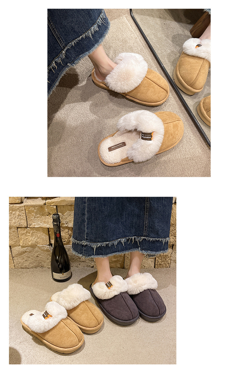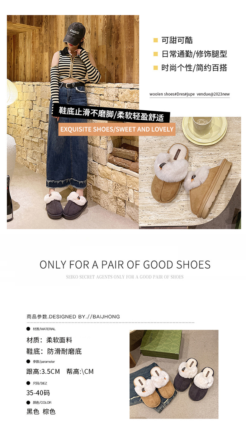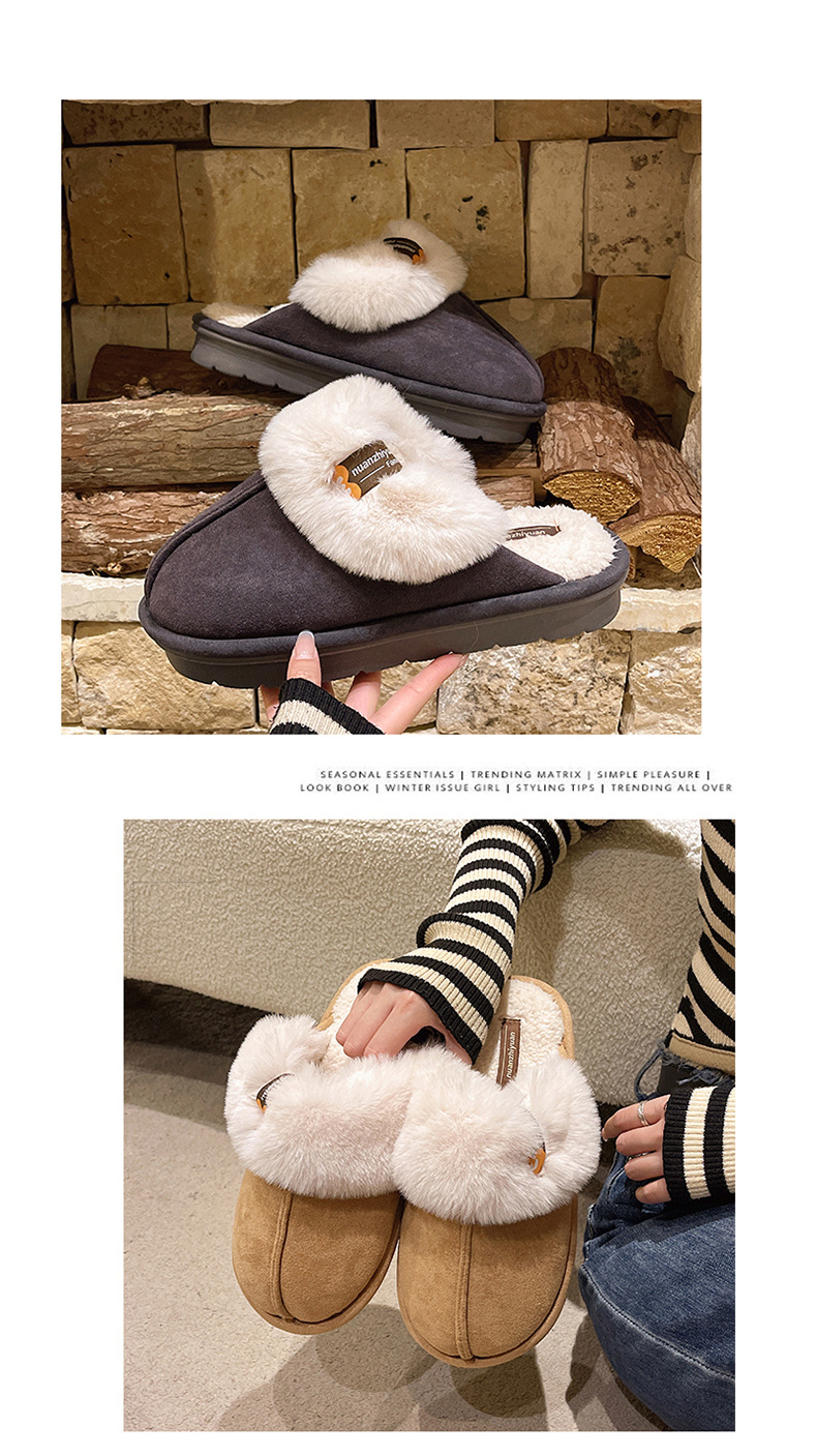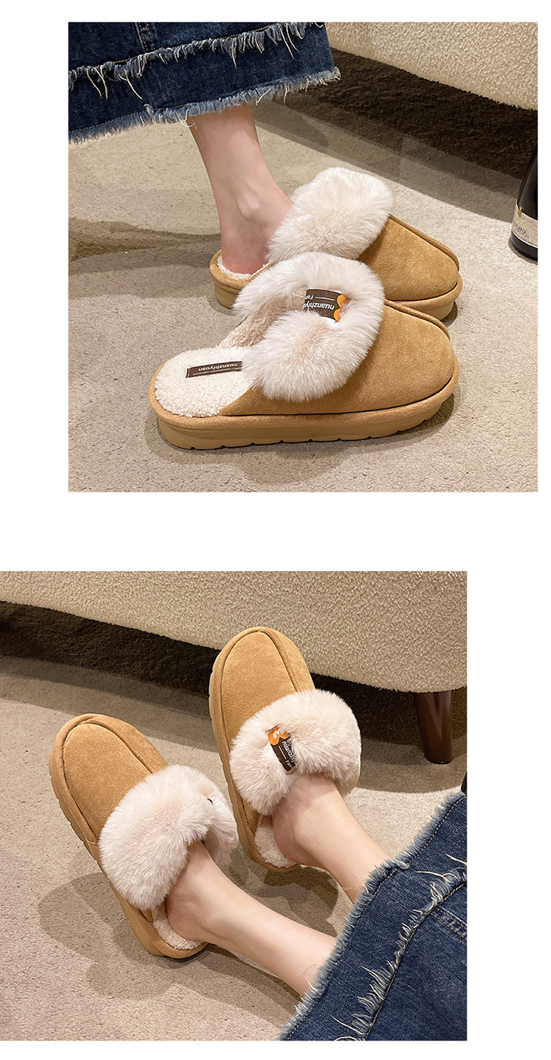 奇丹靴工場のスエードの綿のスリッパの女性の秋冬の新型の家の厚い底の滑り止めの外は毛のぬいぐるみの綿を着て女性を引きずります。
