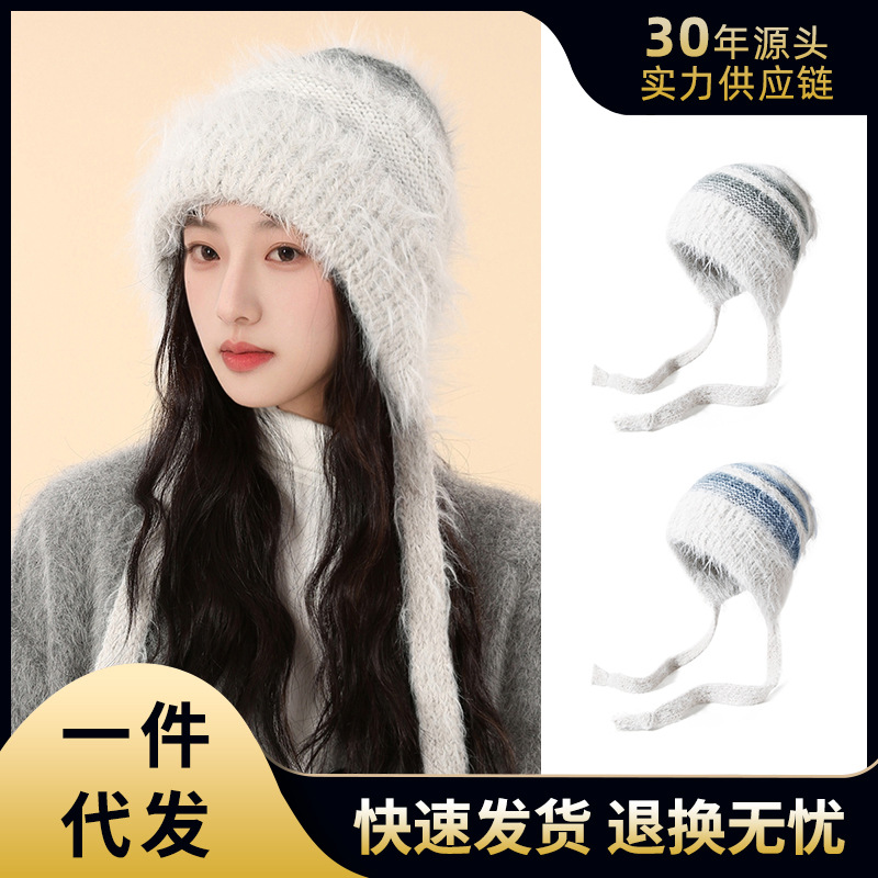 秋冬新季韩系雷锋帽女渐变百搭护耳针织帽户外保暖加绒毛线保暖帽