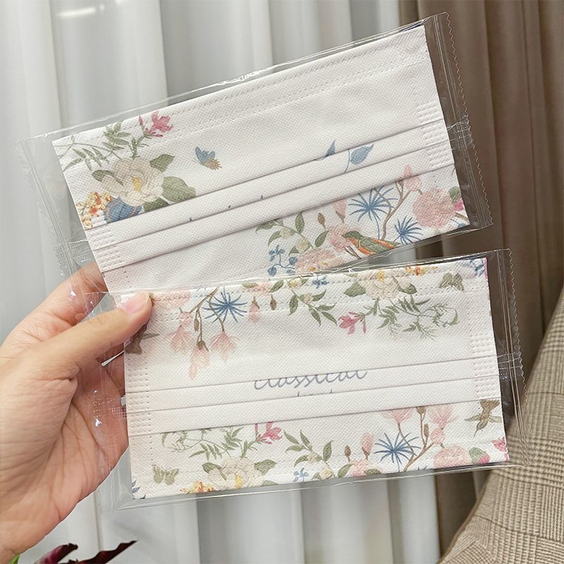 かわいい漫画プリントの使い捨て白いマスク、見た目も美しい女子学生向け、三層構造、新しい通気性のある独立包装