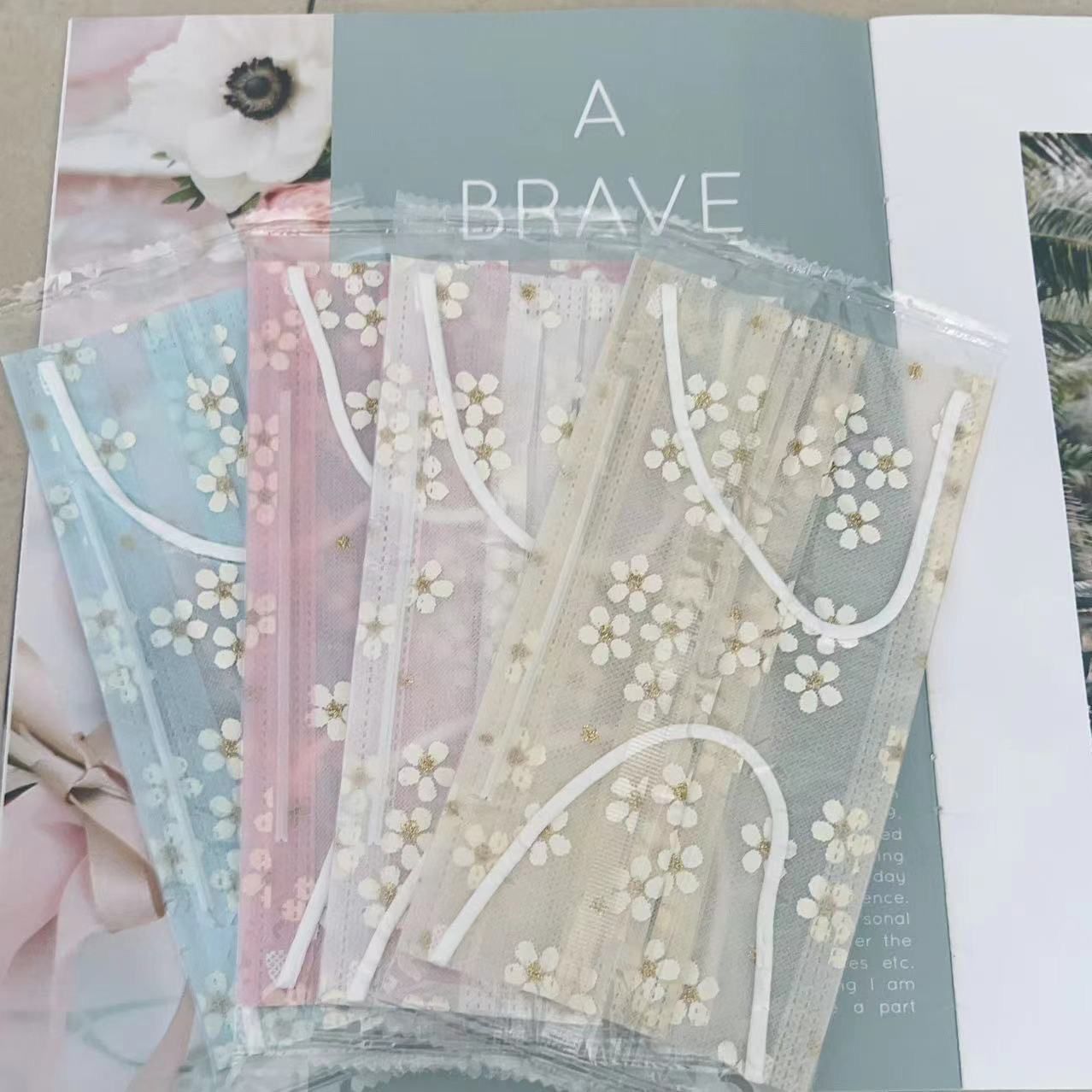 日よけ使い捨て二層ネットマスク一層ネット糸一層布薄い水色桜かわいい