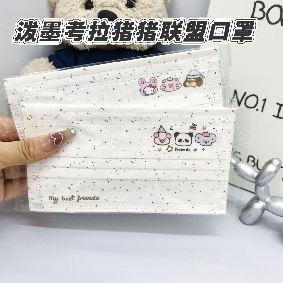 insオリジナルスプラッシュインクコアラピッグプリントマスク使い捨て高価値学生美白かわいいガーリーハート