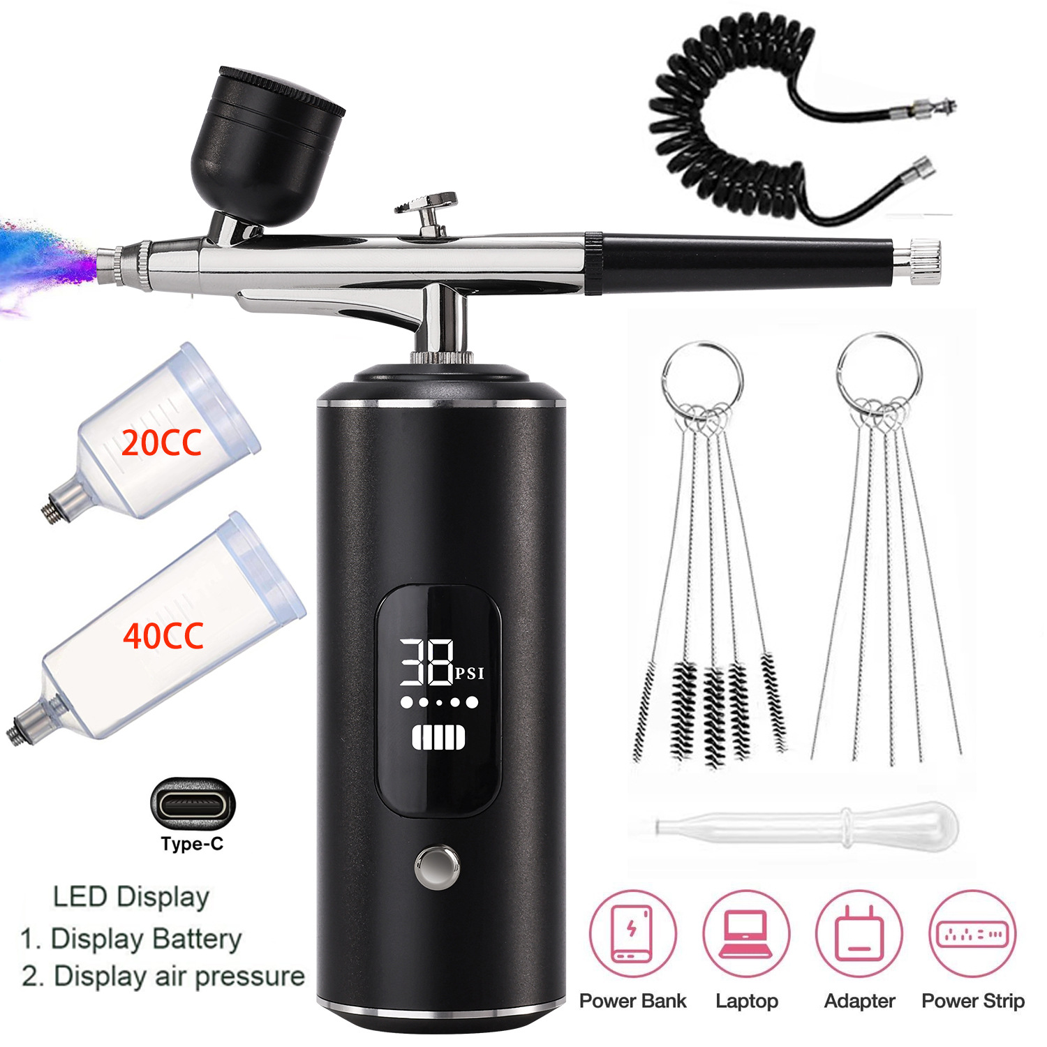 跨境专供渐变美甲喷枪一体机喷笔模型喷绘彩绘纹身套装面部美容枪