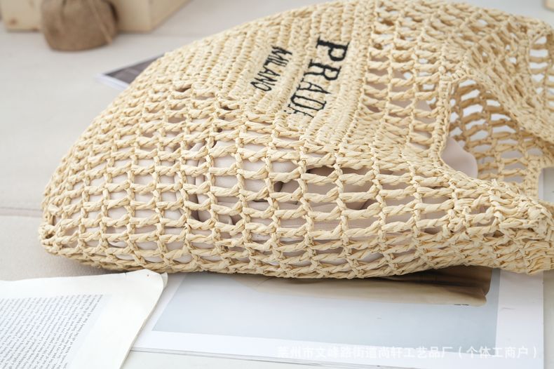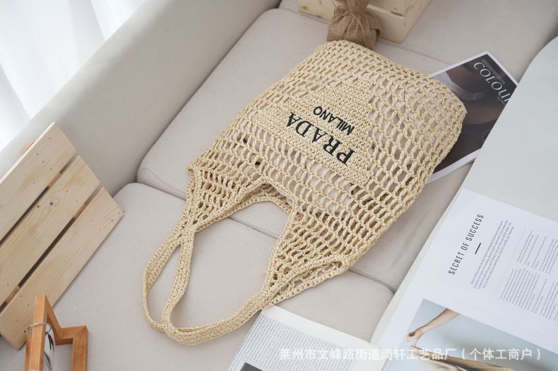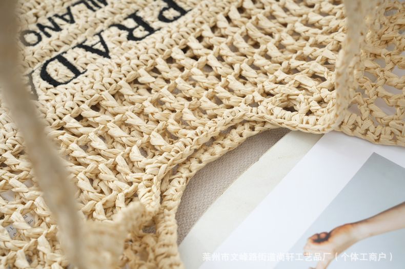 文字刺繍手織りバッグ中空かぎ針編みストローバッグ海辺休暇ビーチバッグショルダーバッグストローバッグ女性用