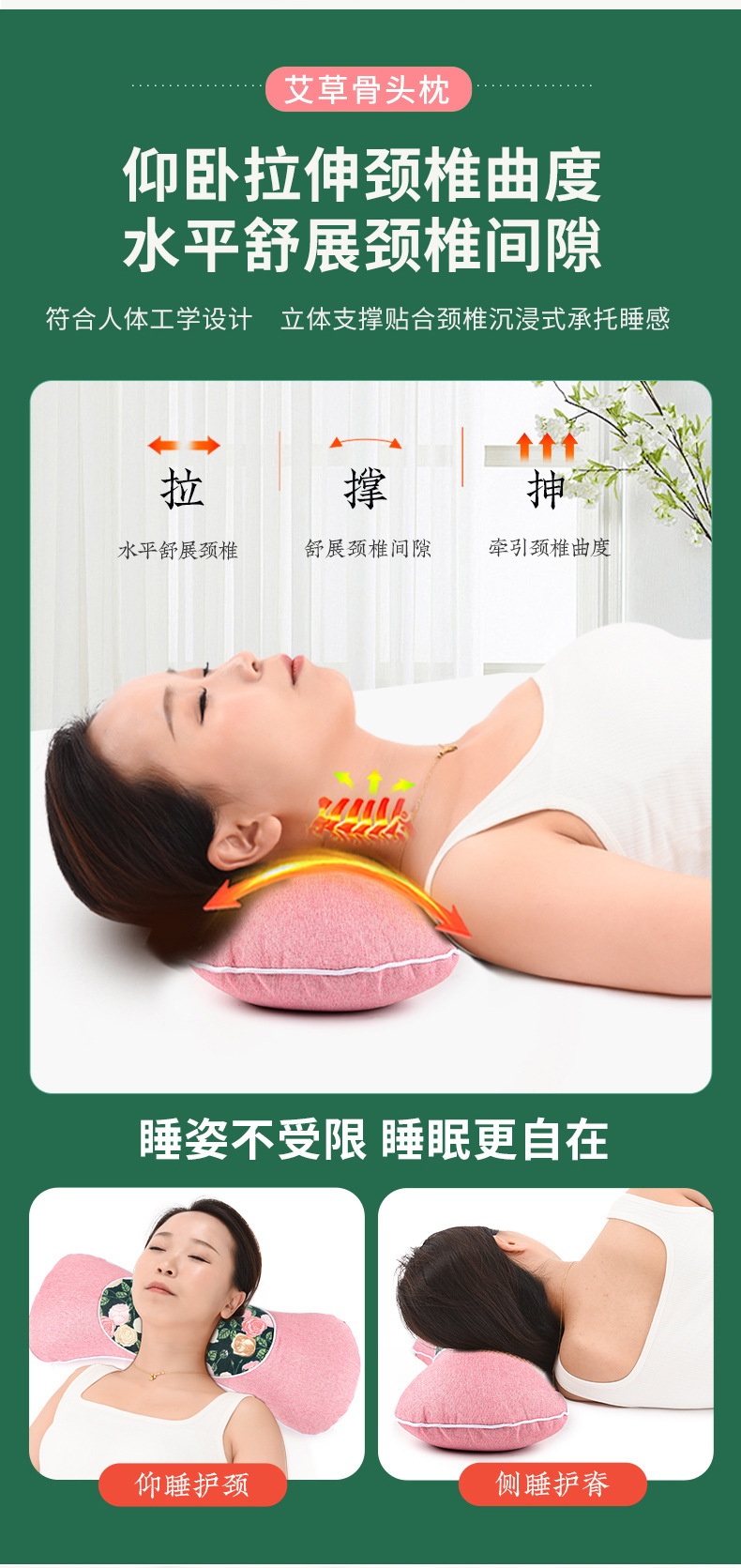 よもぎ頸椎枕、頸椎保護よもぎ組み合わせ、取り外し可能な家庭用睡眠首枕、硬質円筒形枕、結合枕