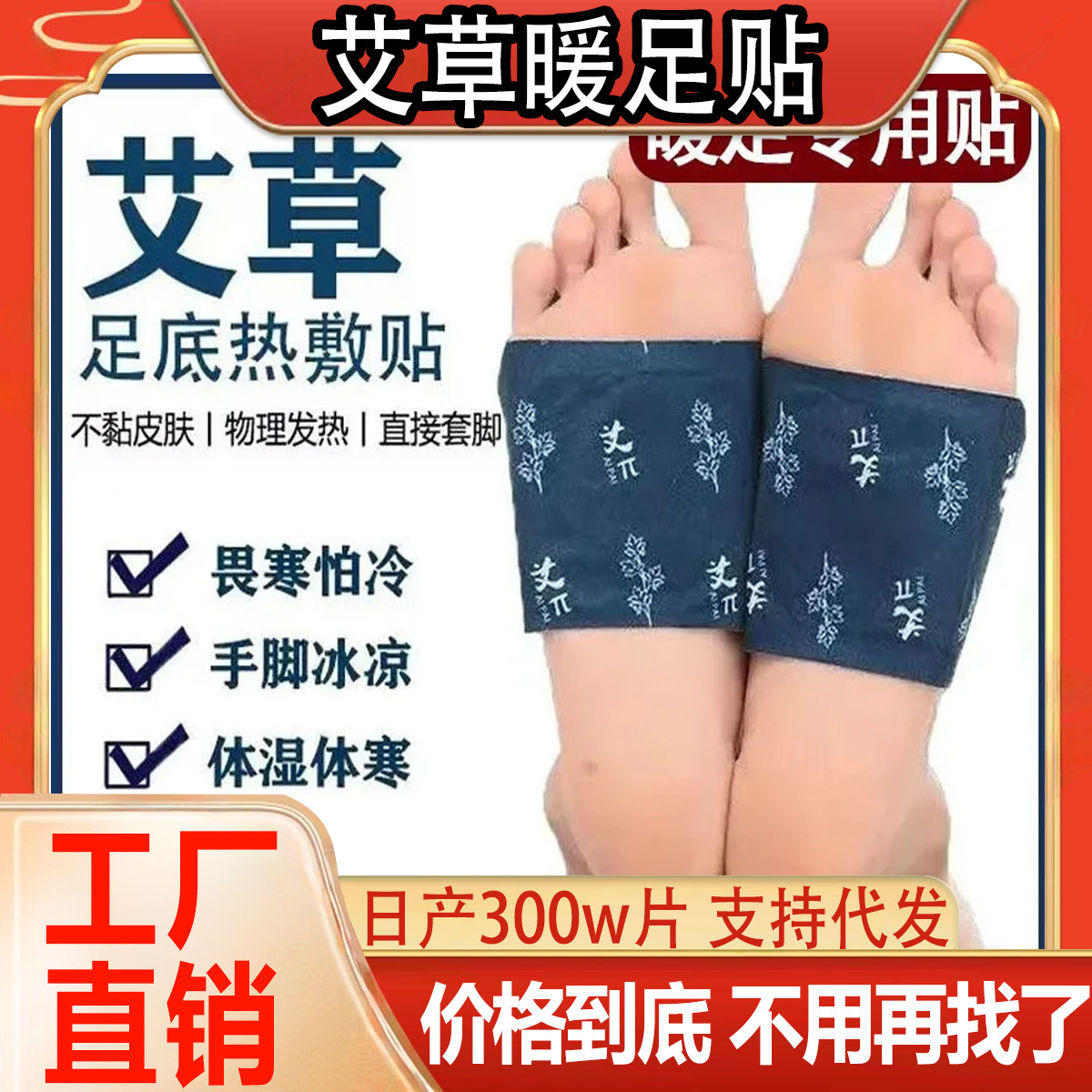 暖かい足は暖かい足の裏に貼ってあります。艾草生姜は暖かい足に貼ってあります。