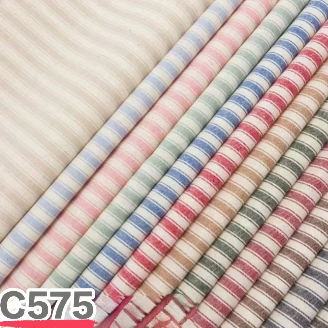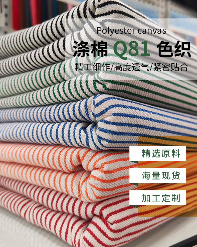 在庫あり ポリエステル綿混紡ストライプ柄生地 シャツ、エプロン、バッグ、テーブルクロス、靴材 無地ストライプ生地 卸売
