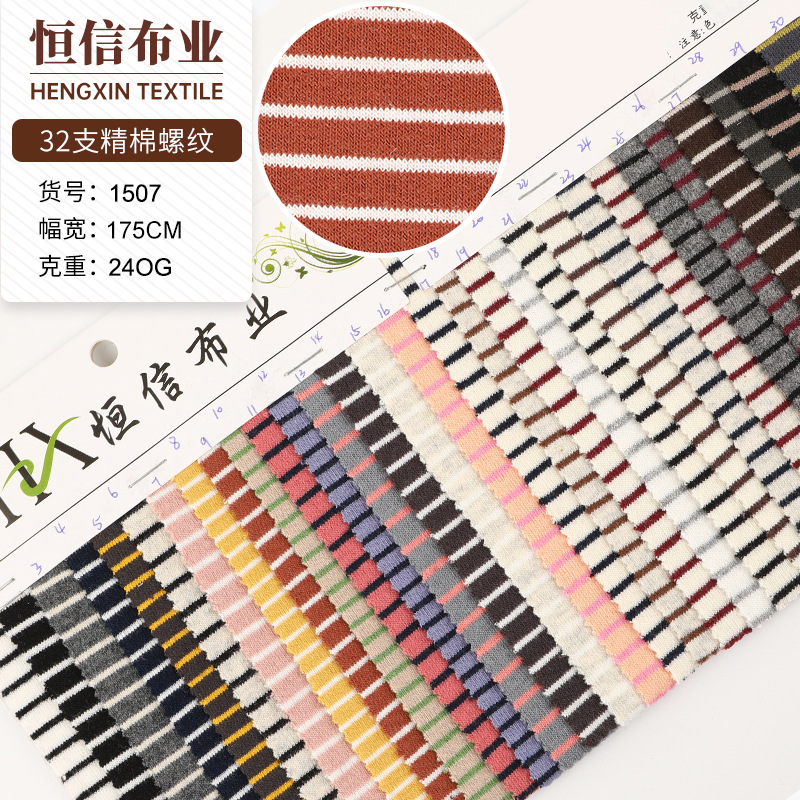 32支精棉螺纹条纹面料 240g棉拉架条纹布 秋冬色织条子童装布料