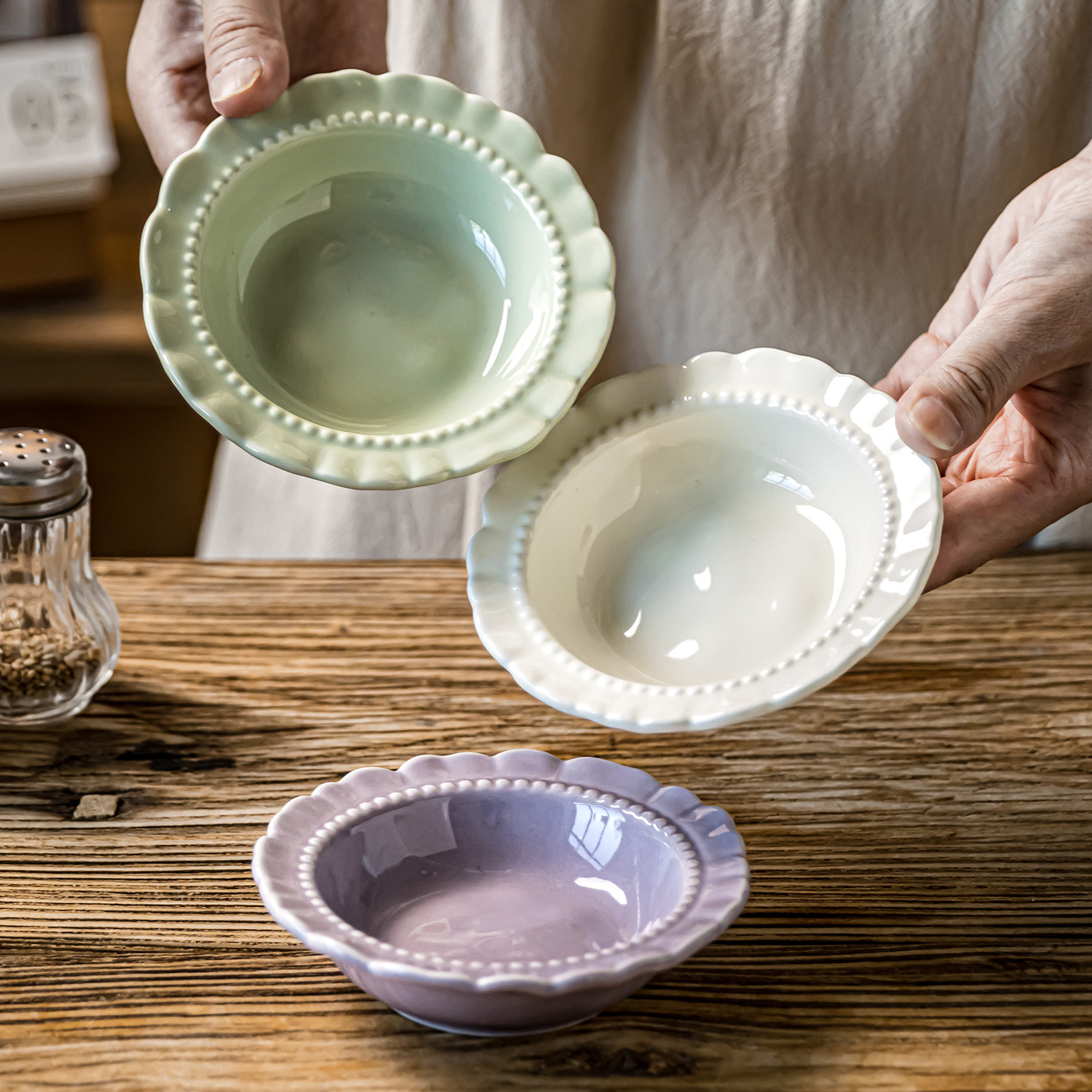 高颜值花边陶瓷味碟ins碟子批发甜品碟家用蘸料碟调味碟餐具餐碟