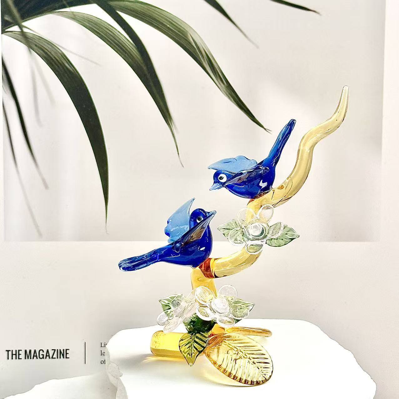 手工琉璃双鸟花卉摆件轻奢家居书房软装艺术品送礼佳品创意工艺品