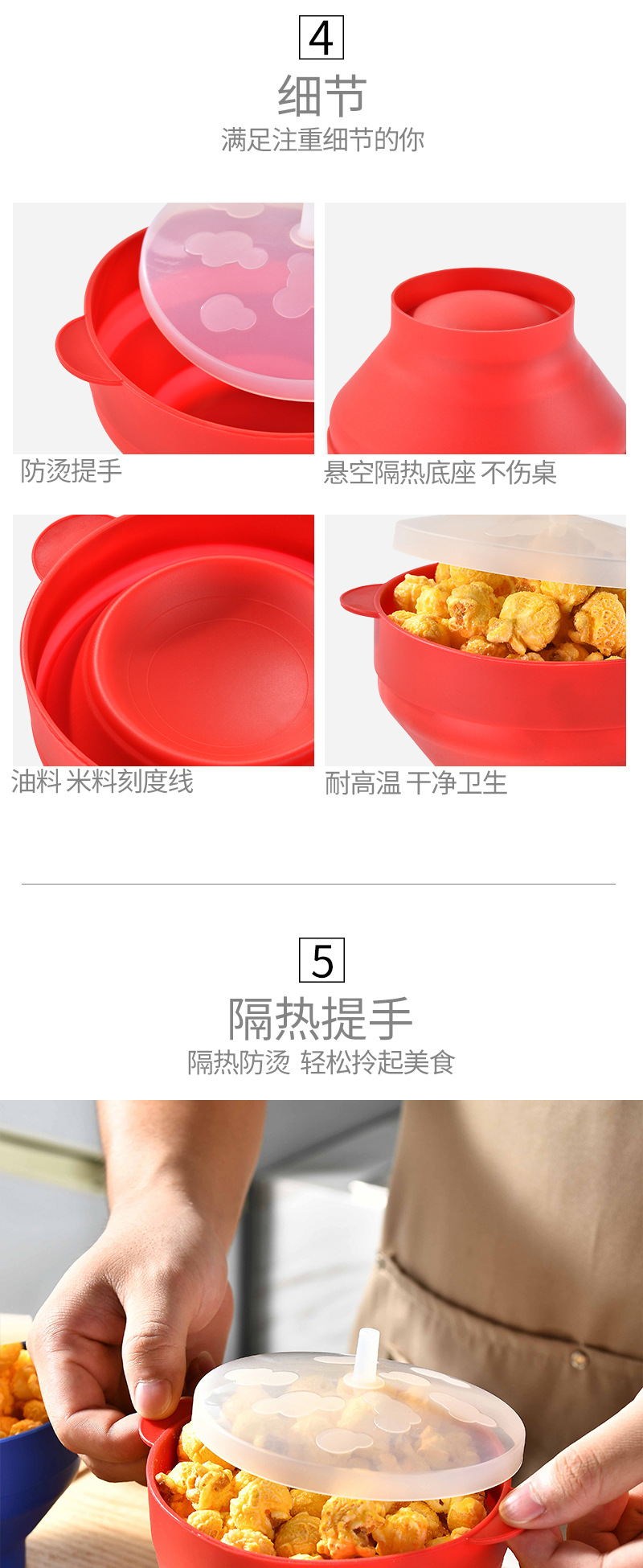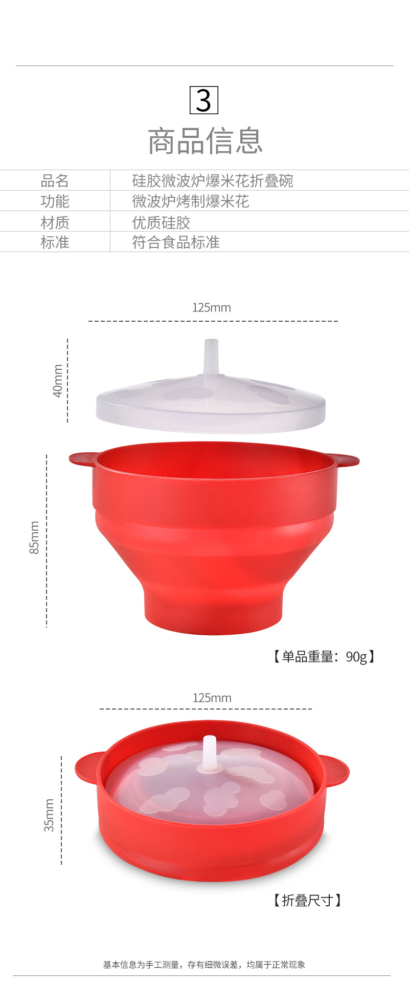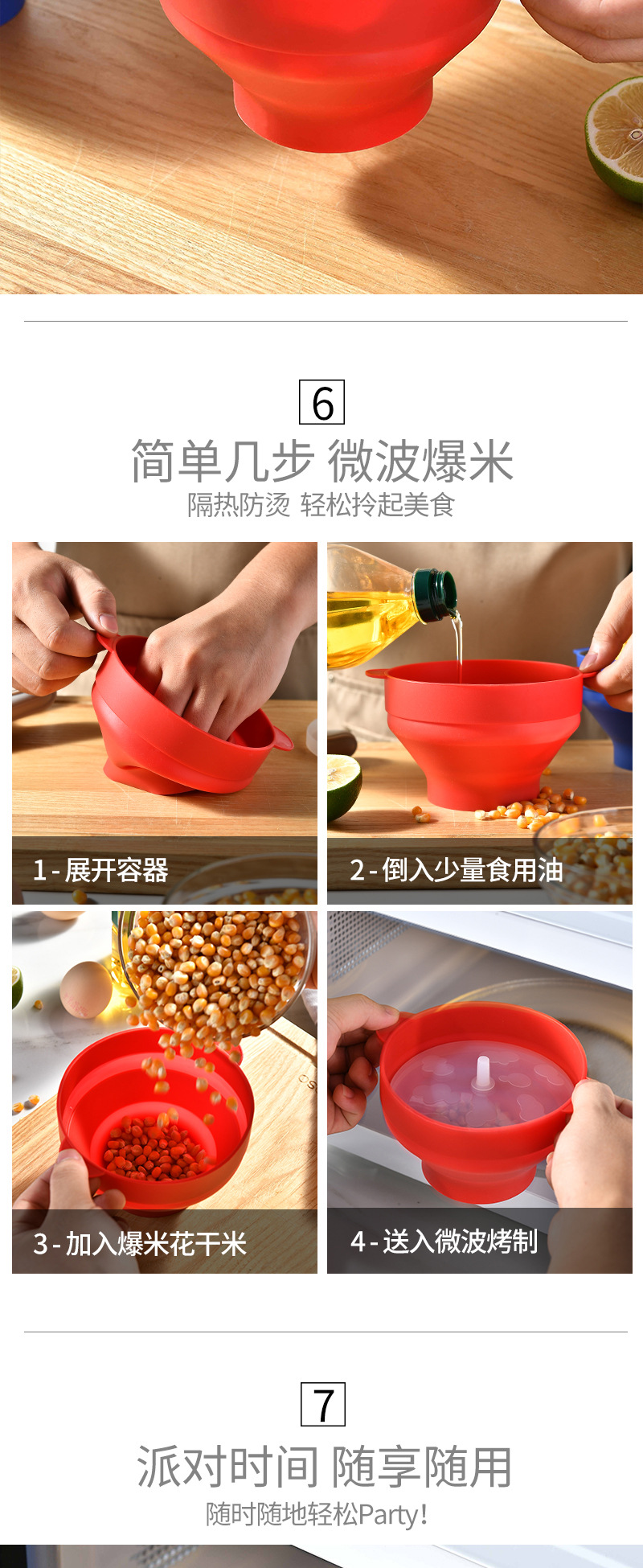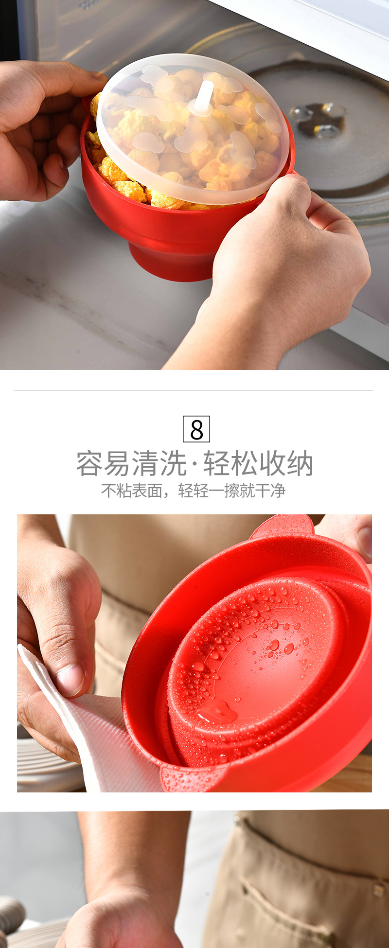 跨境可折叠硅胶爆米花碗耐高温可入烤箱爆米花桶硅胶餐具可重复使