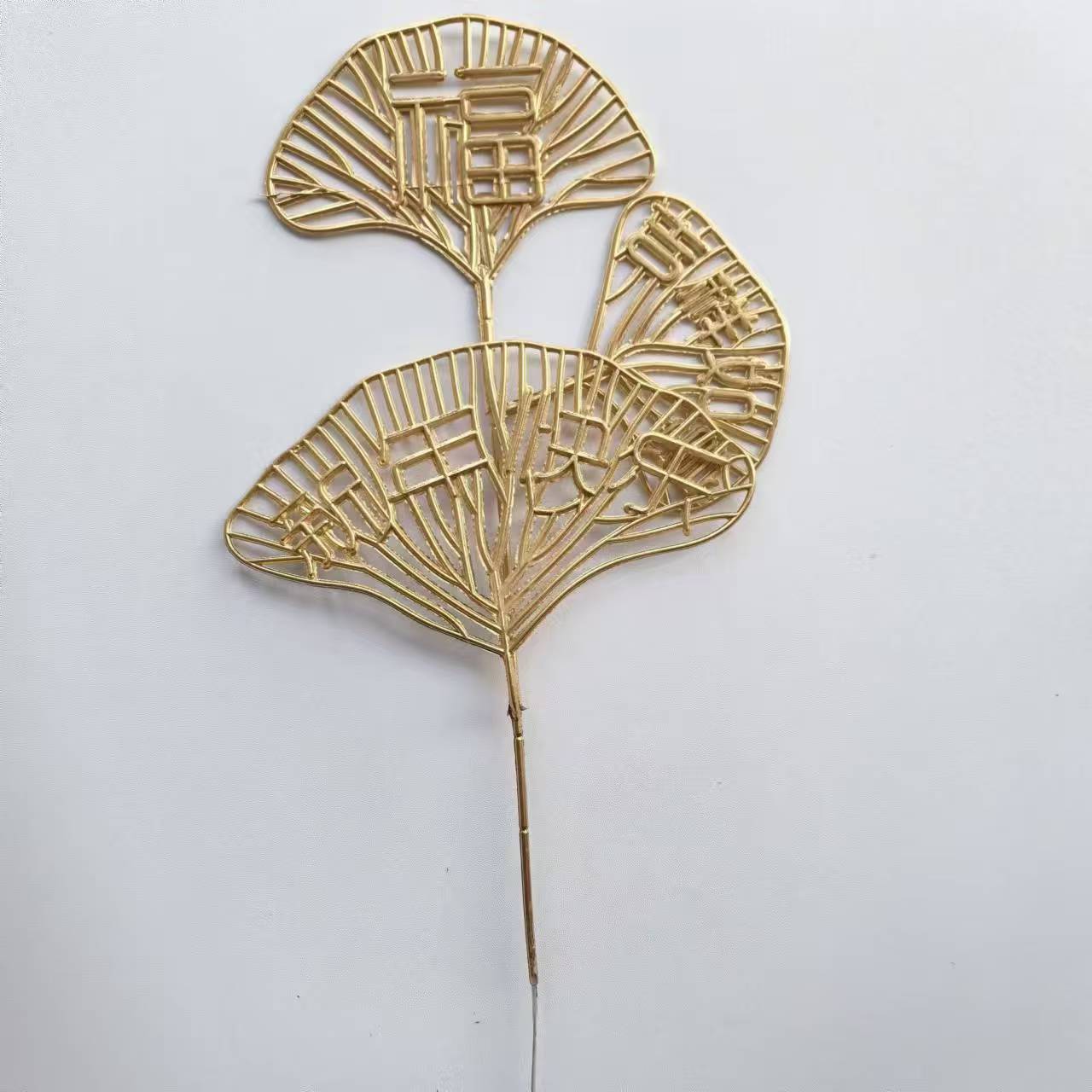シミュレーション金色の葉イチョウの葉金色のプラスチック扇子福字部品福桶生け花部品材料手作りDIY