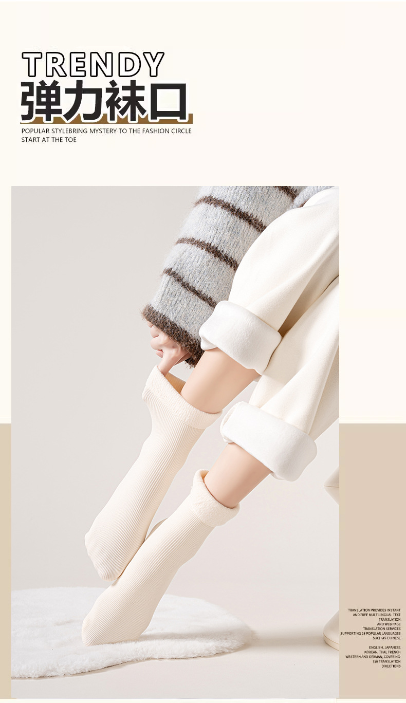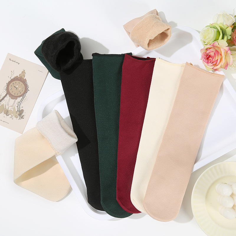 秋冬光面雪地袜加绒保暖纯色中筒袜 加绒材质柔软温暖袜子女批发