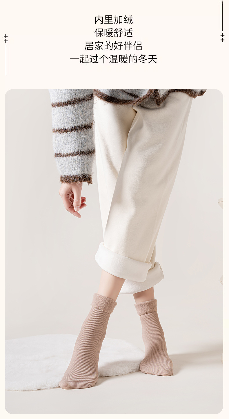 秋と冬の女性用ソックスアースカラースノーソックスミッドチューブプラスベルベット厚みのある暖かい睡眠フロアストッキング冬の女性用