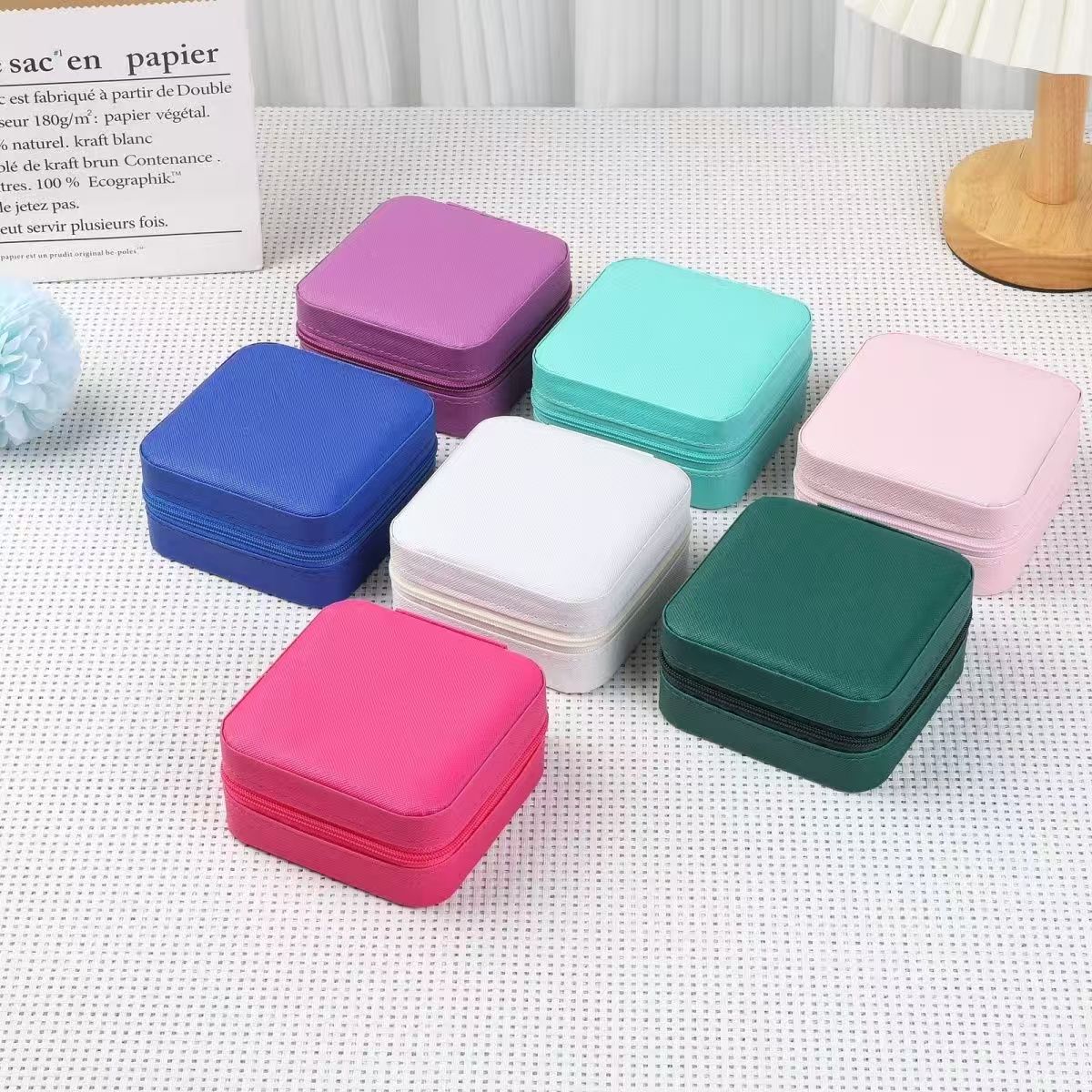 シンプルなジュエリーのチャックボックスアマゾンの正方形の耳飾り旅行指輪のイヤリングのアクセサリーの箱の携帯卸売り