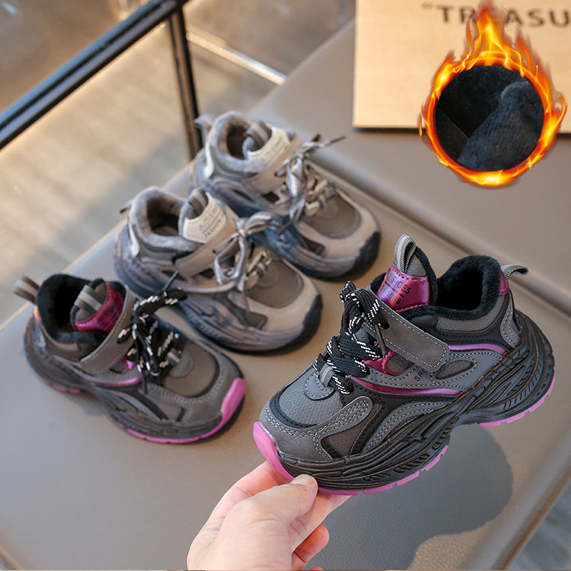 ファッション児童百合古典的な透かし彫り金とベルベットスポーツシューズ2024年冬の男女児童保温綿靴