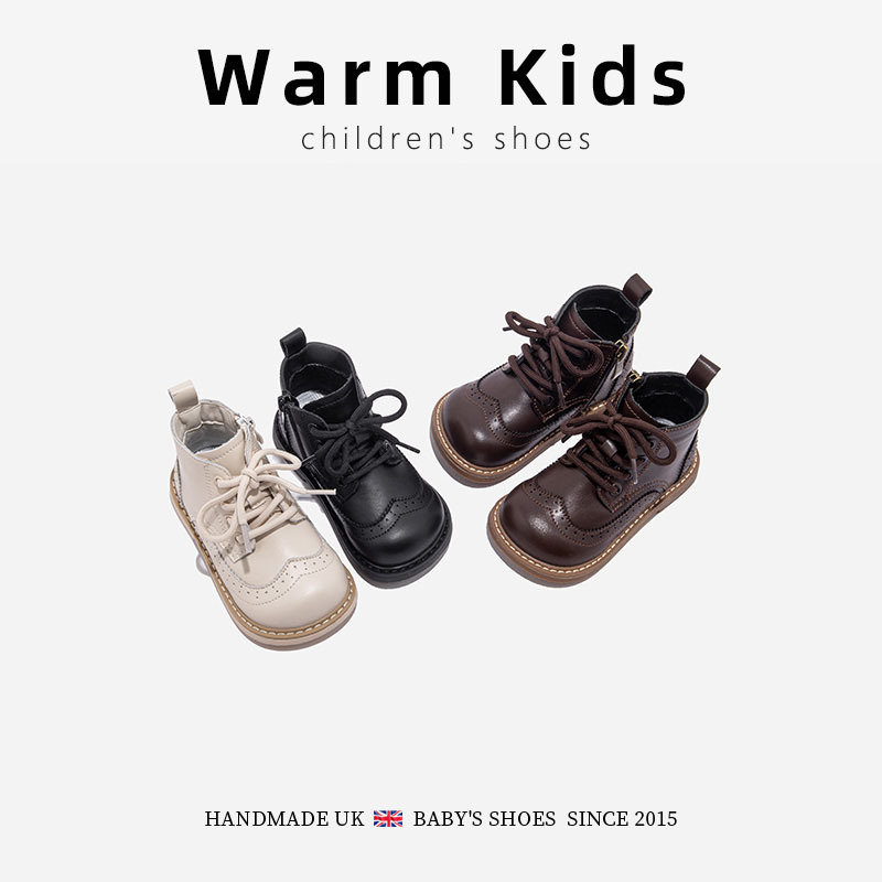 本革卸売子供靴、子供ブーツ、秋冬新作、男の子と女の子向けのシンプルな気質、多用途の滑り止めマーティンブーツ