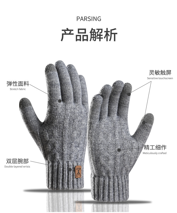 越境新作冬用保温手袋、タッチスクリーン対応、裏起毛・厚手ニット手袋、防寒アルパカウールメンズ手袋