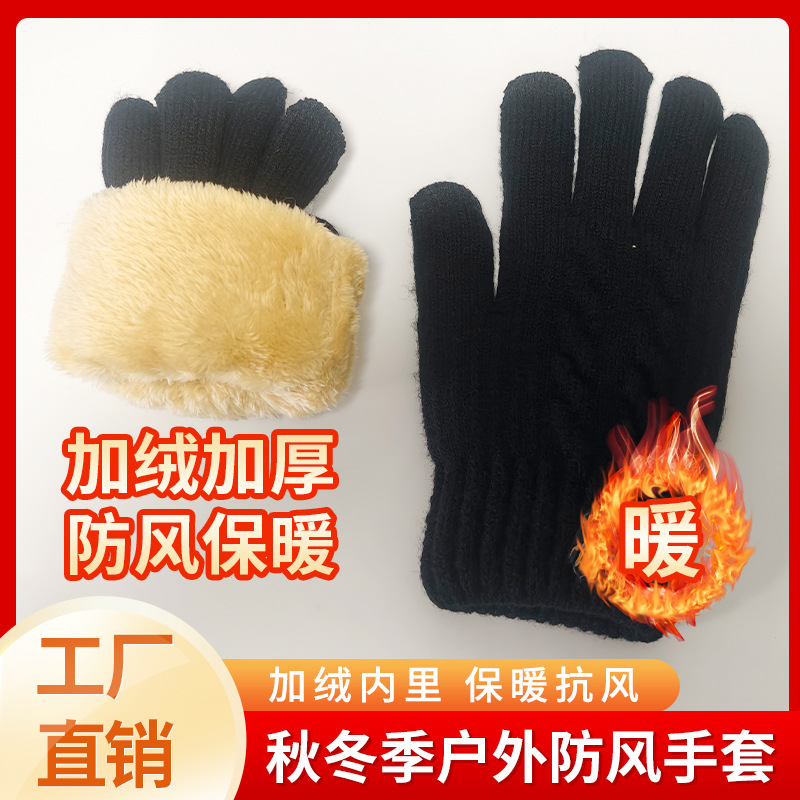 2025 新しいアマゾンクロスボーダー冬二重層ベルベットニット手袋暖かい屋外タッチスクリーン手袋卸売