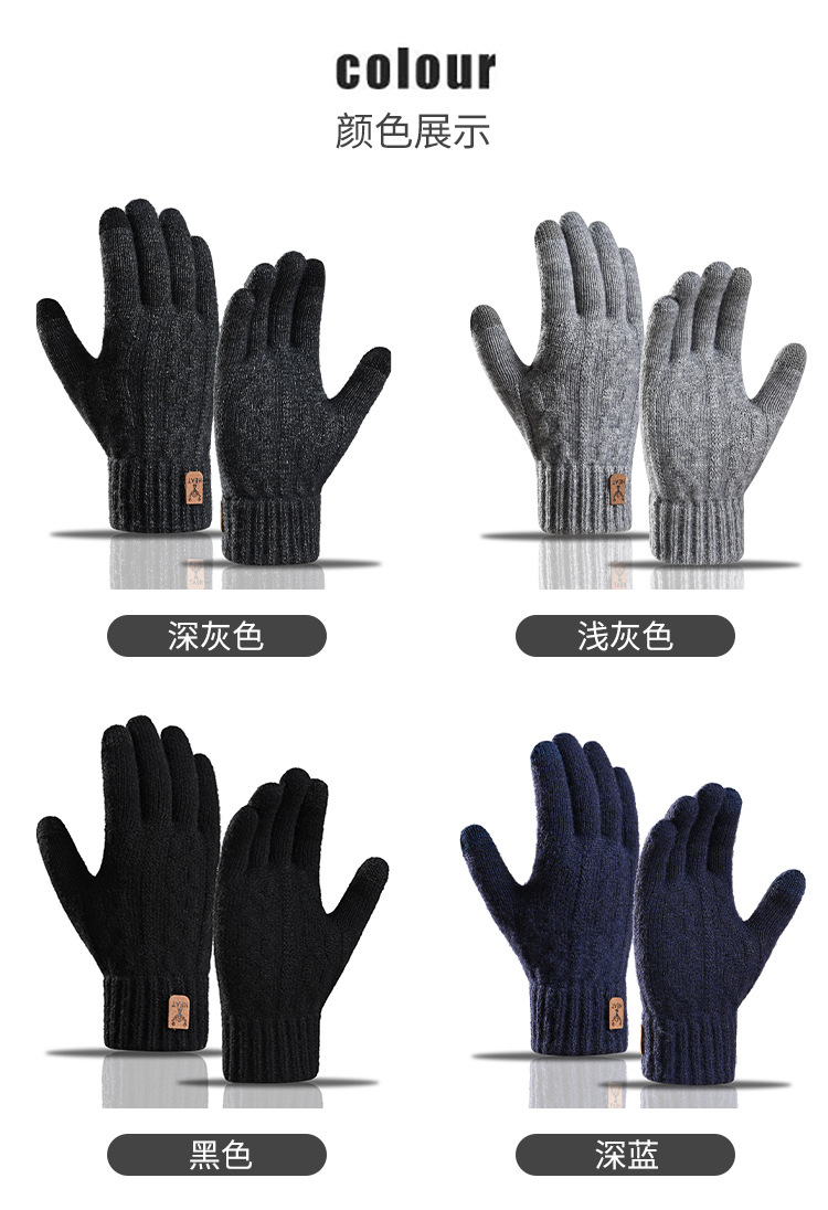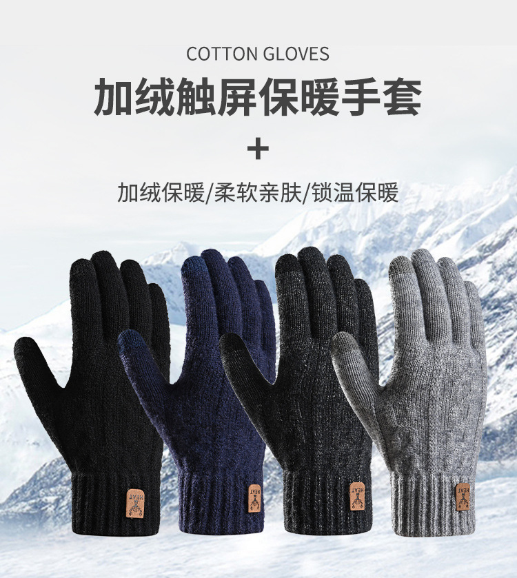 冬の保温手袋のタッチパネルとベルベットの厚いニットは防寒男性手袋の五本指毛糸手袋が国境を越えている