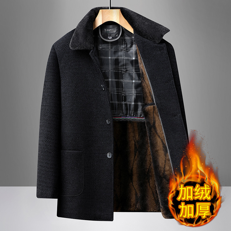 中年男性用羊毛混紡ジャケット、綿入れジャケット、お父さん用綿入れ服、男性用上着、高齢者用ジャケット、中丈綿入れ服