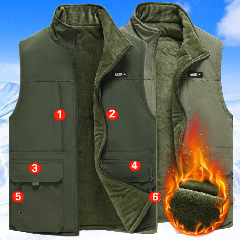 立襟秋冬ベルベット保温馬甲男性中高年発熱冬ベスト大ポケット卸売り大コード
