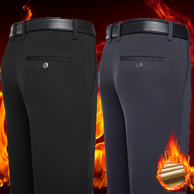 秋冬厚手男性ビジネスカジュアルパンツ中年ストレートゆるい弾力ストレートパンツ高腰ベルベット抗シワパンツ