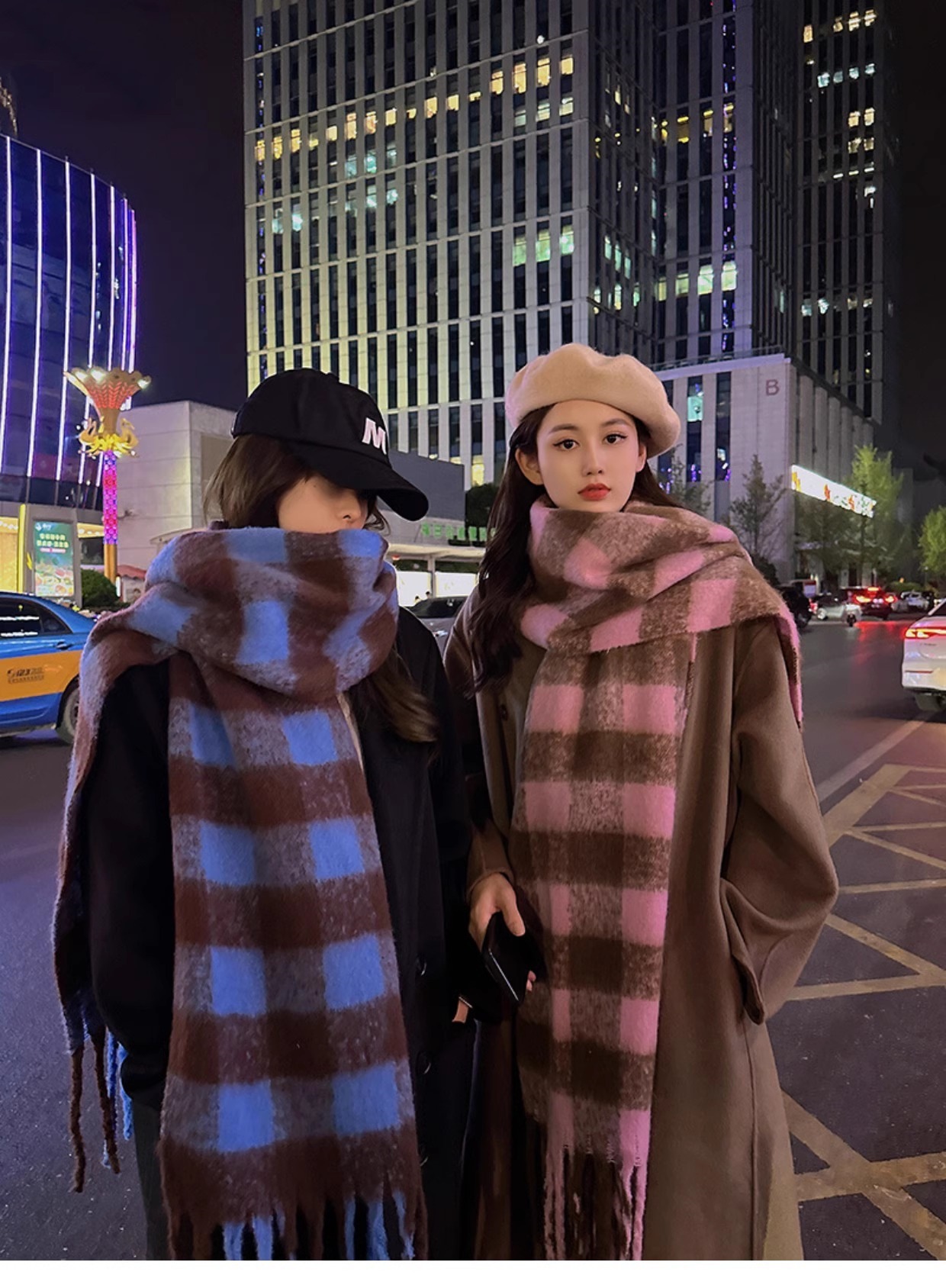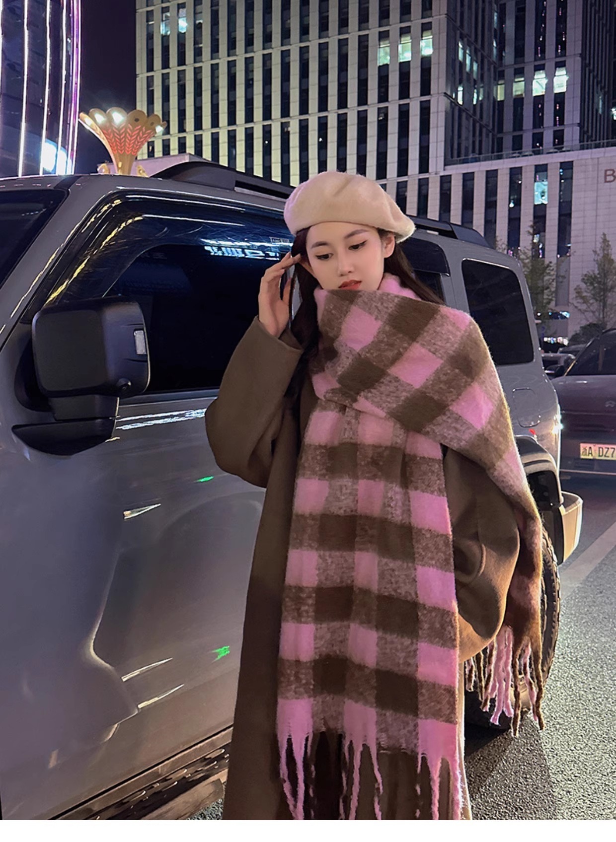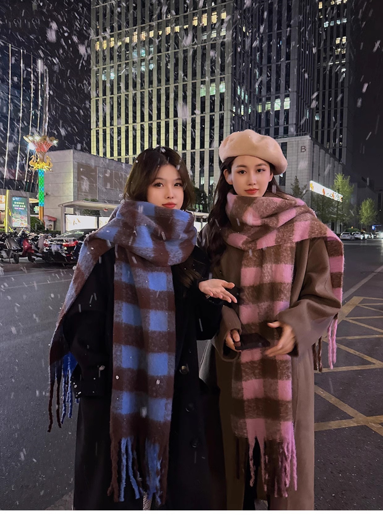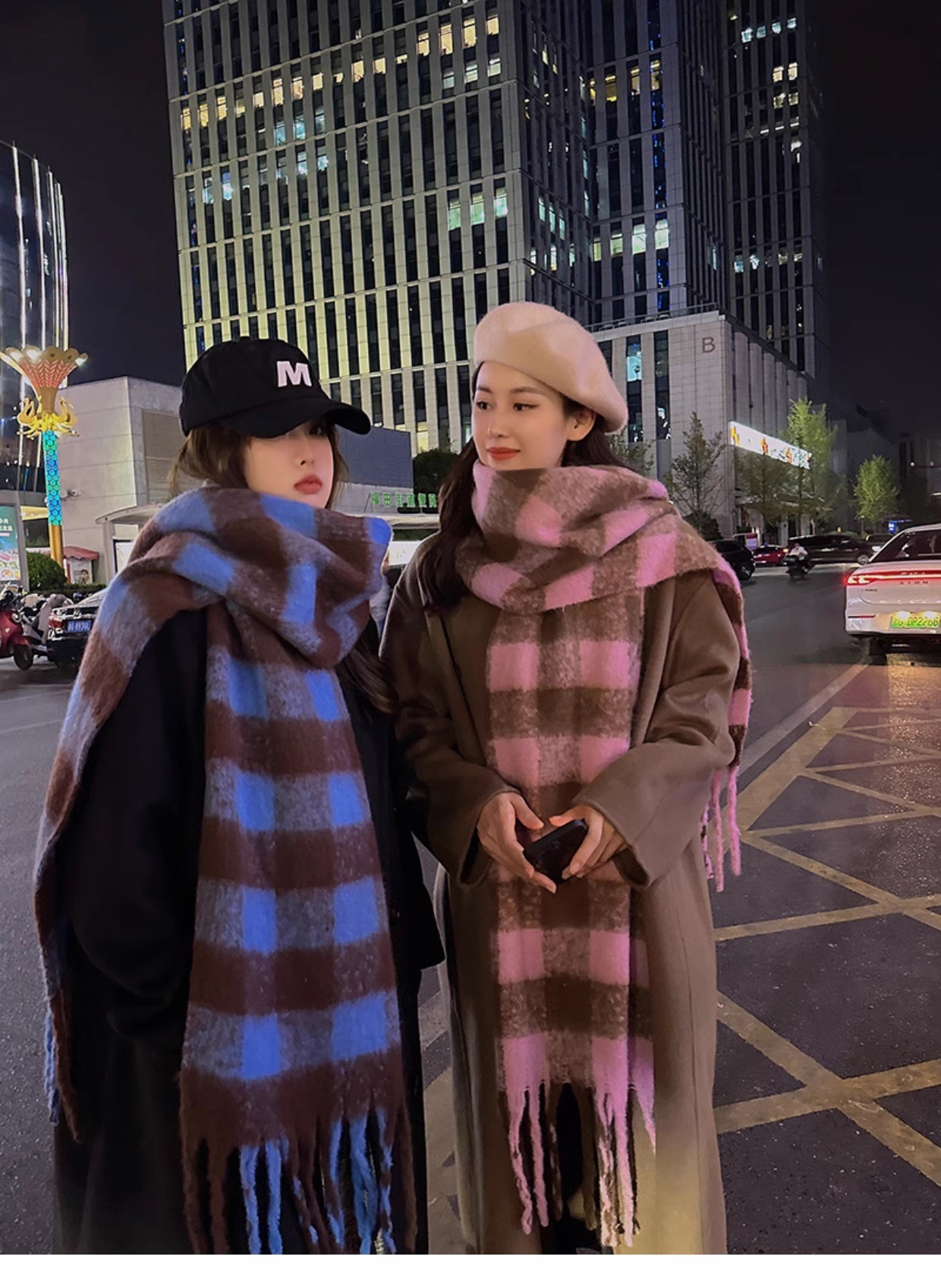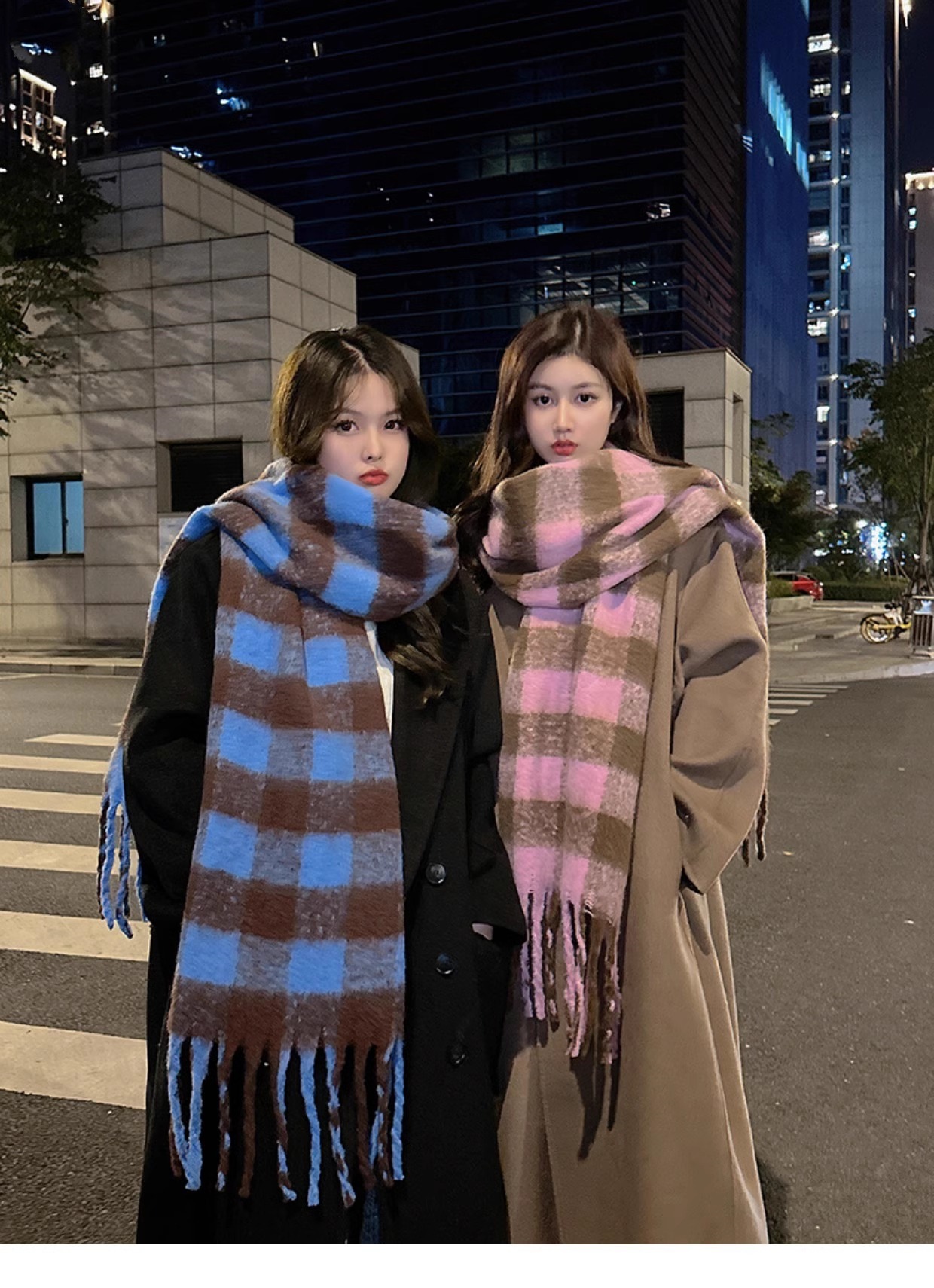 2025秋冬スカーフ レディース 高級感 カップル 韓国風 ショール 学生 女性用 タッセル付き チェック柄 ロングスカーフ 防寒