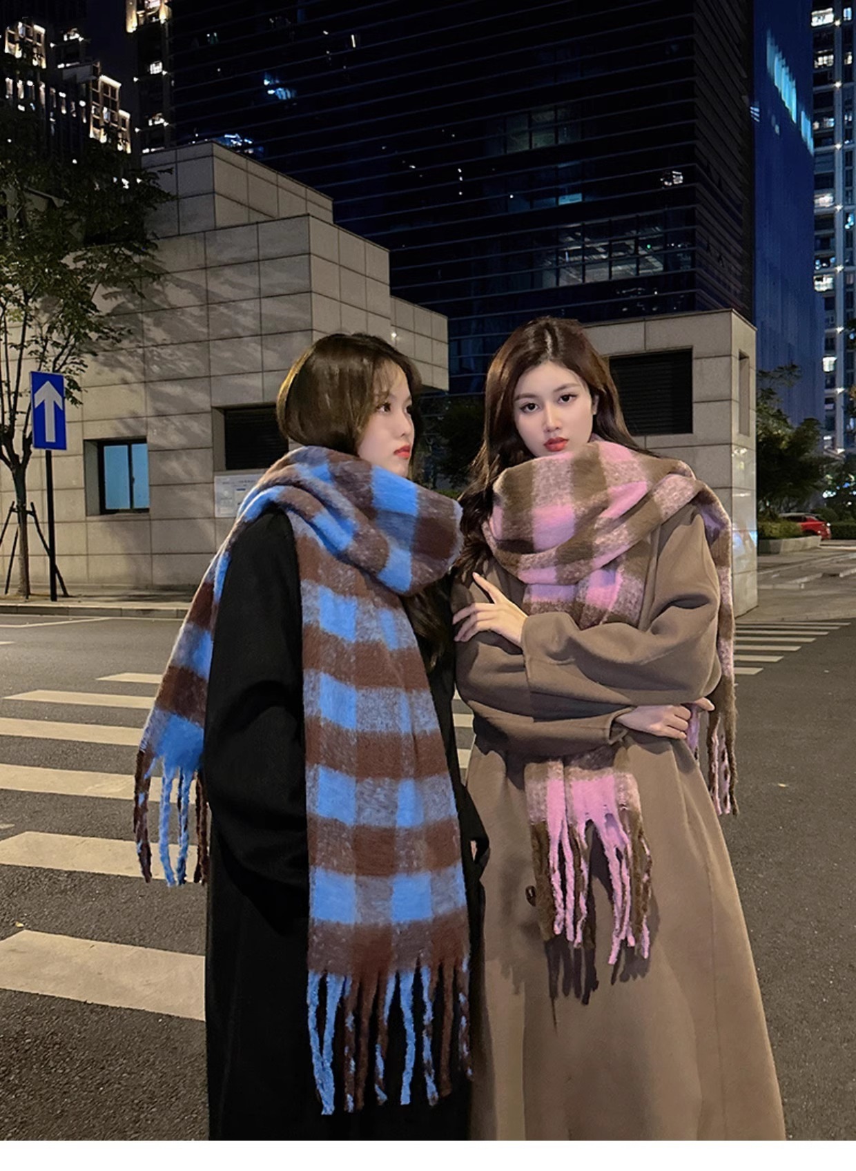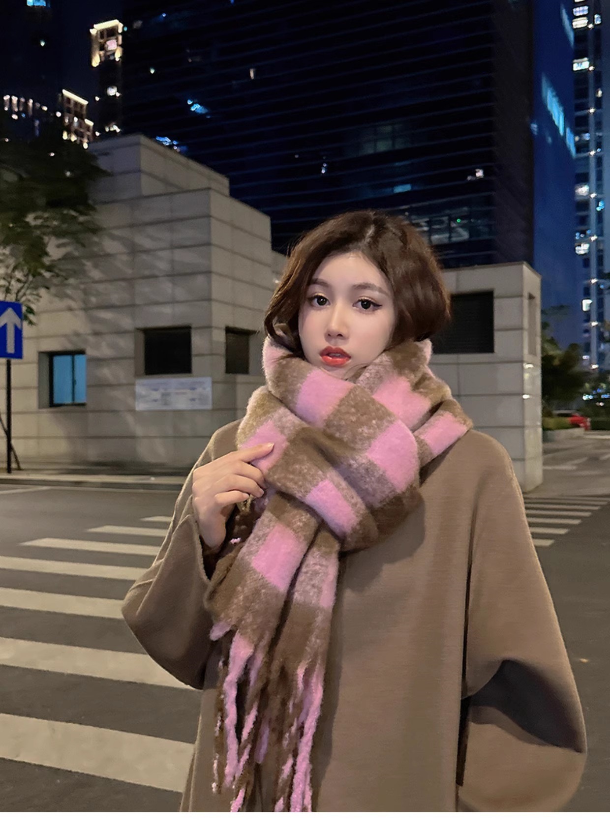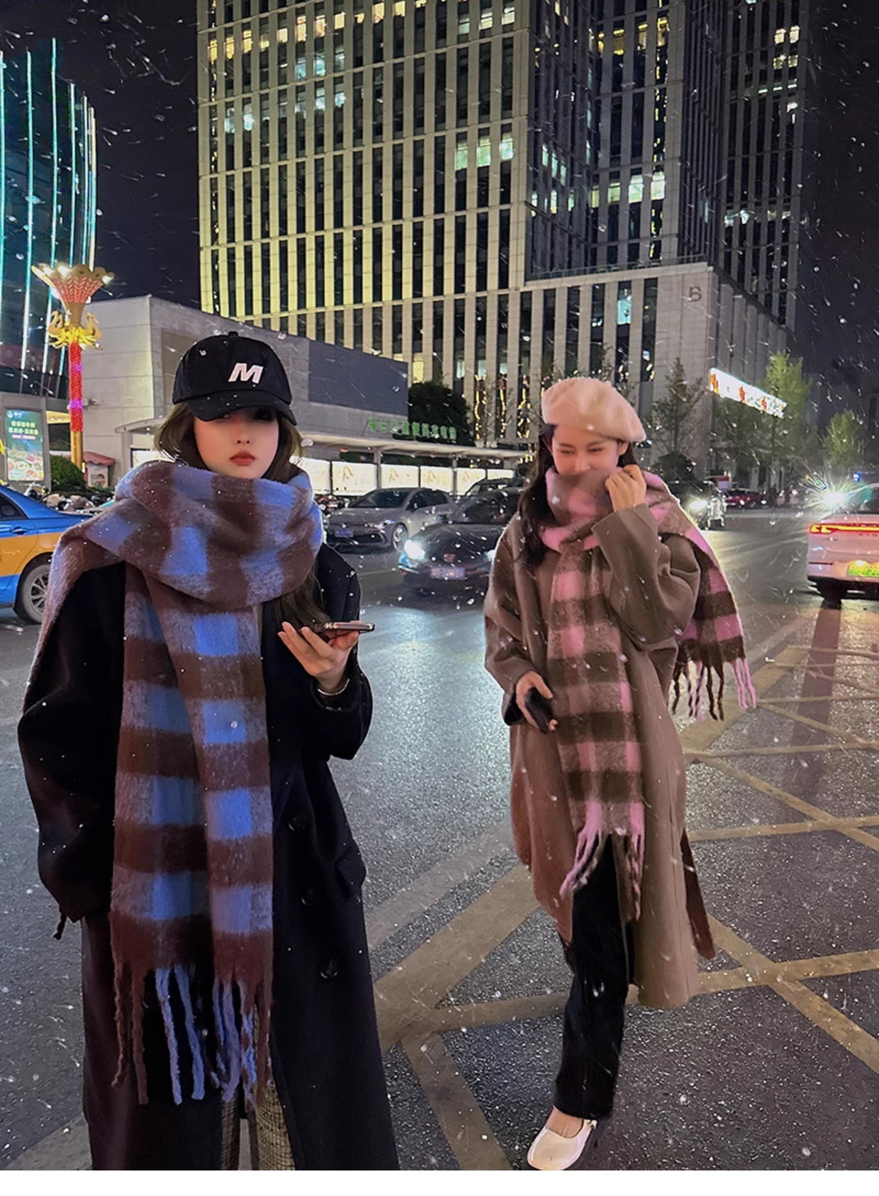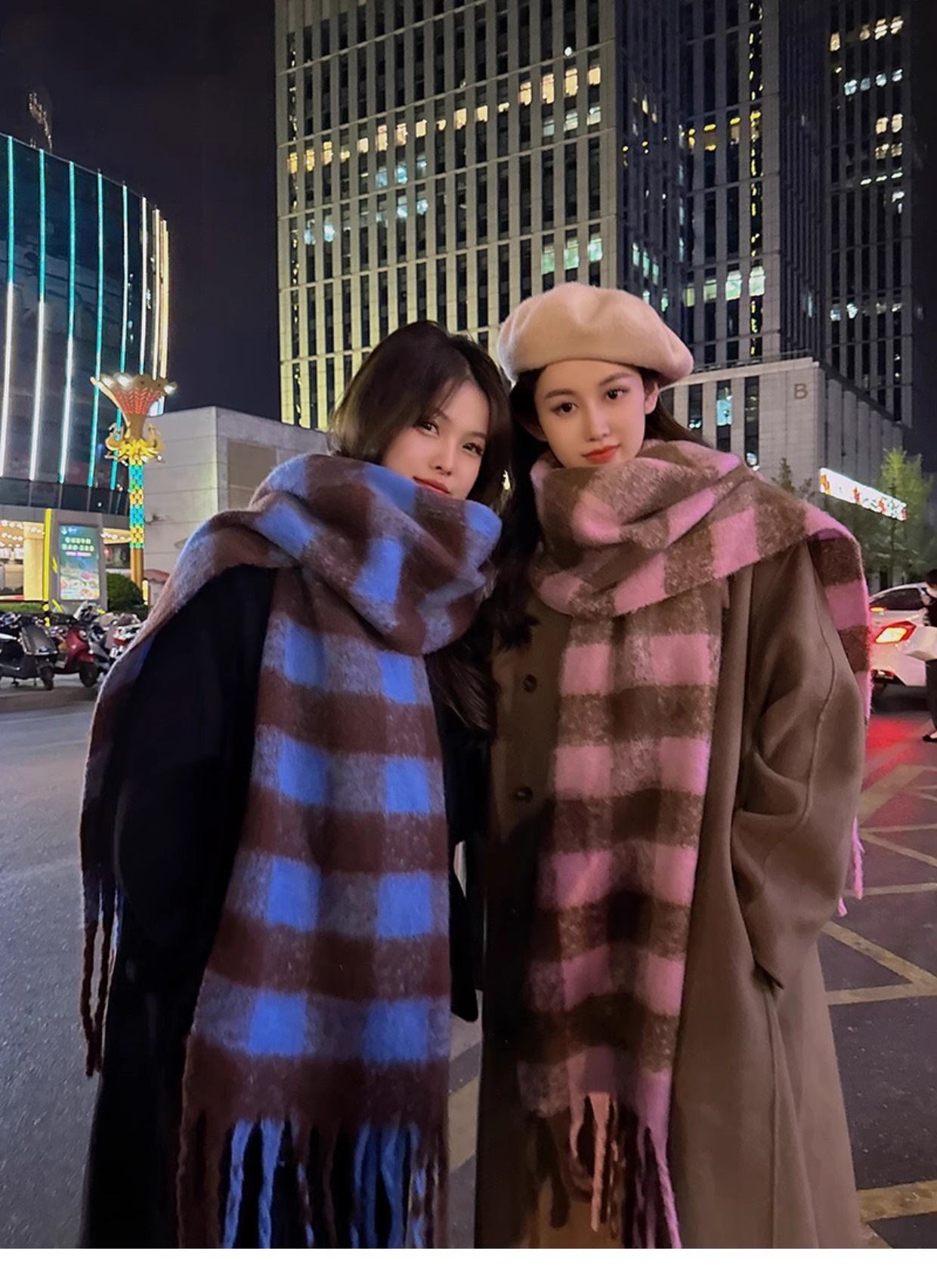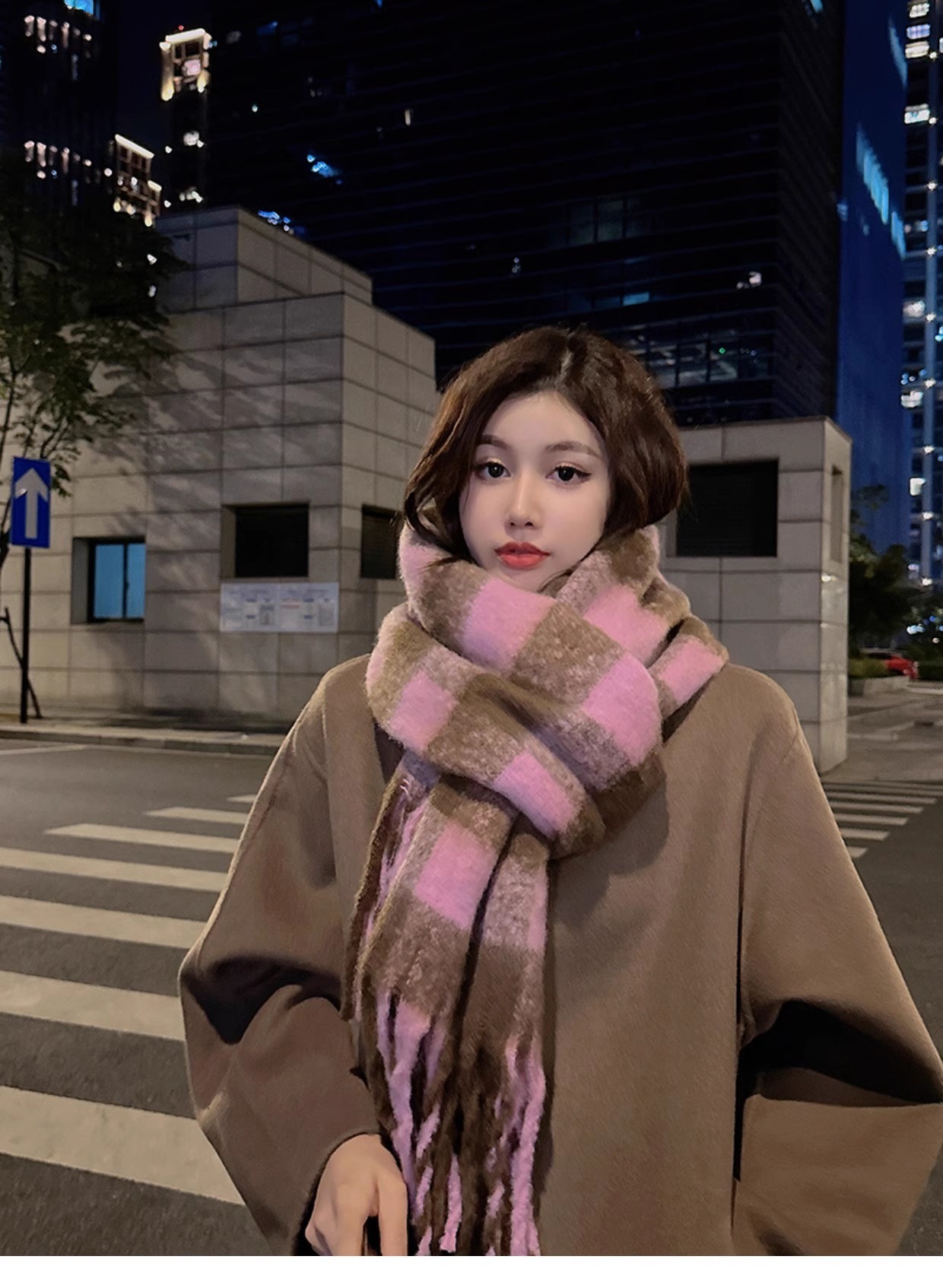 2025秋冬スカーフ レディース 高級感 カップル 韓国風 ショール 学生 女性用 タッセル付き チェック柄 ロングスカーフ 防寒
