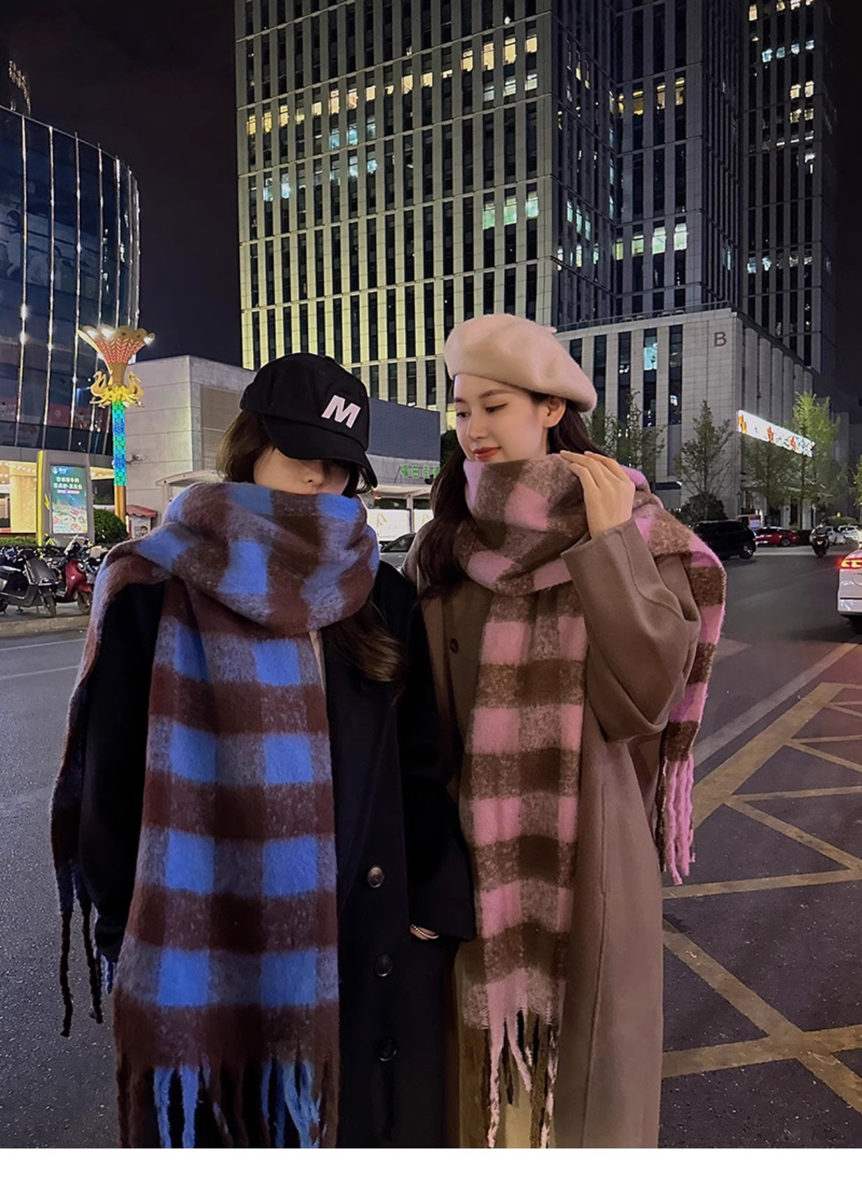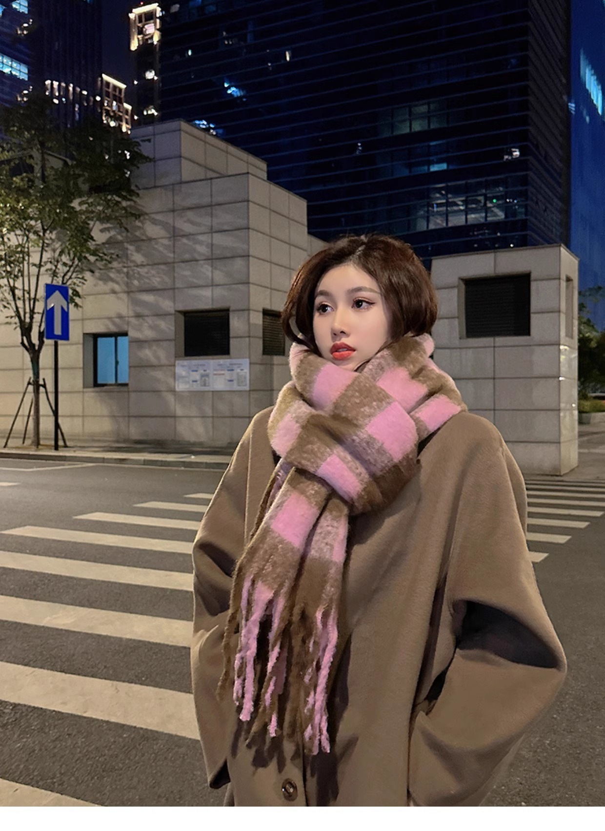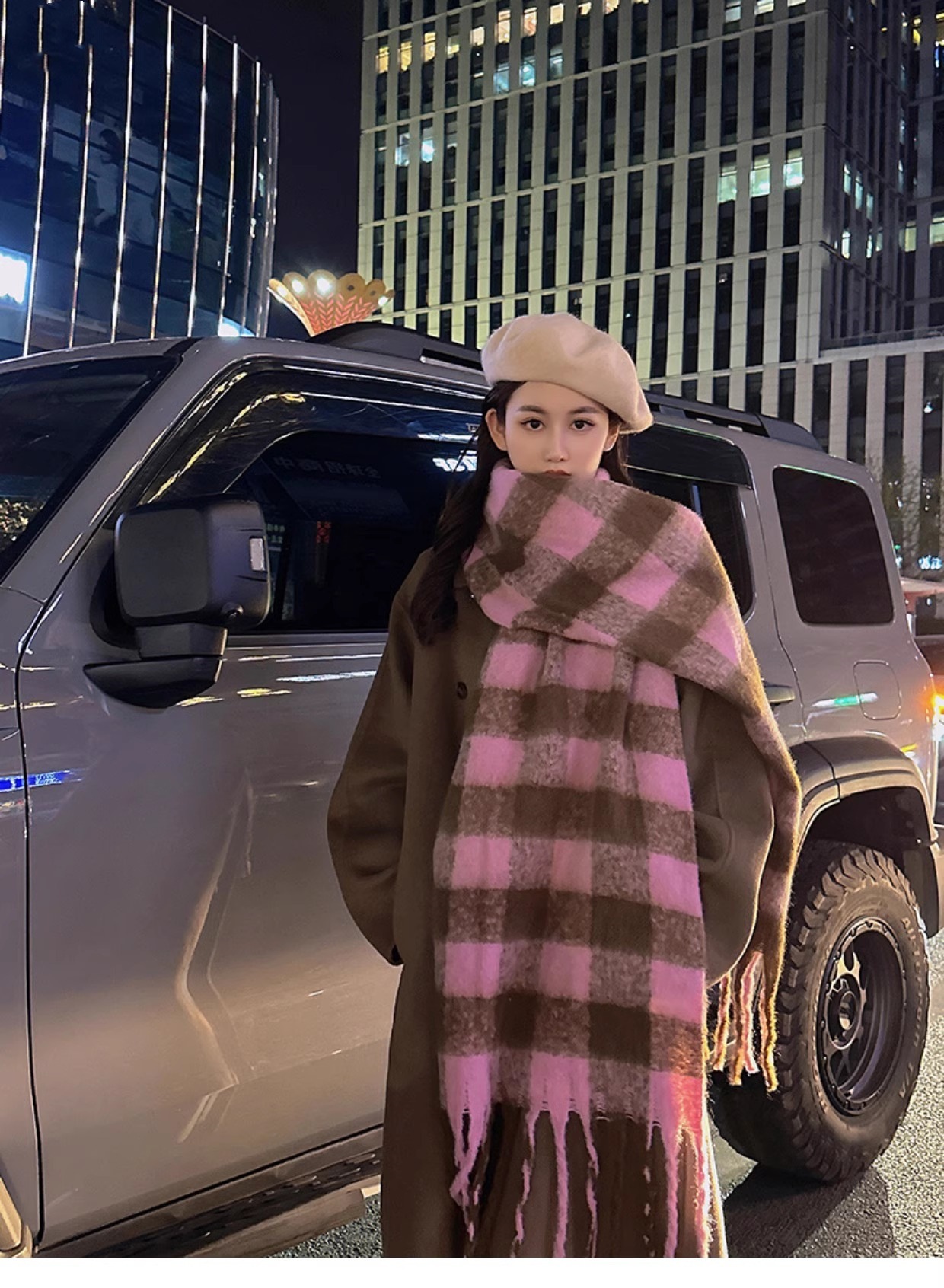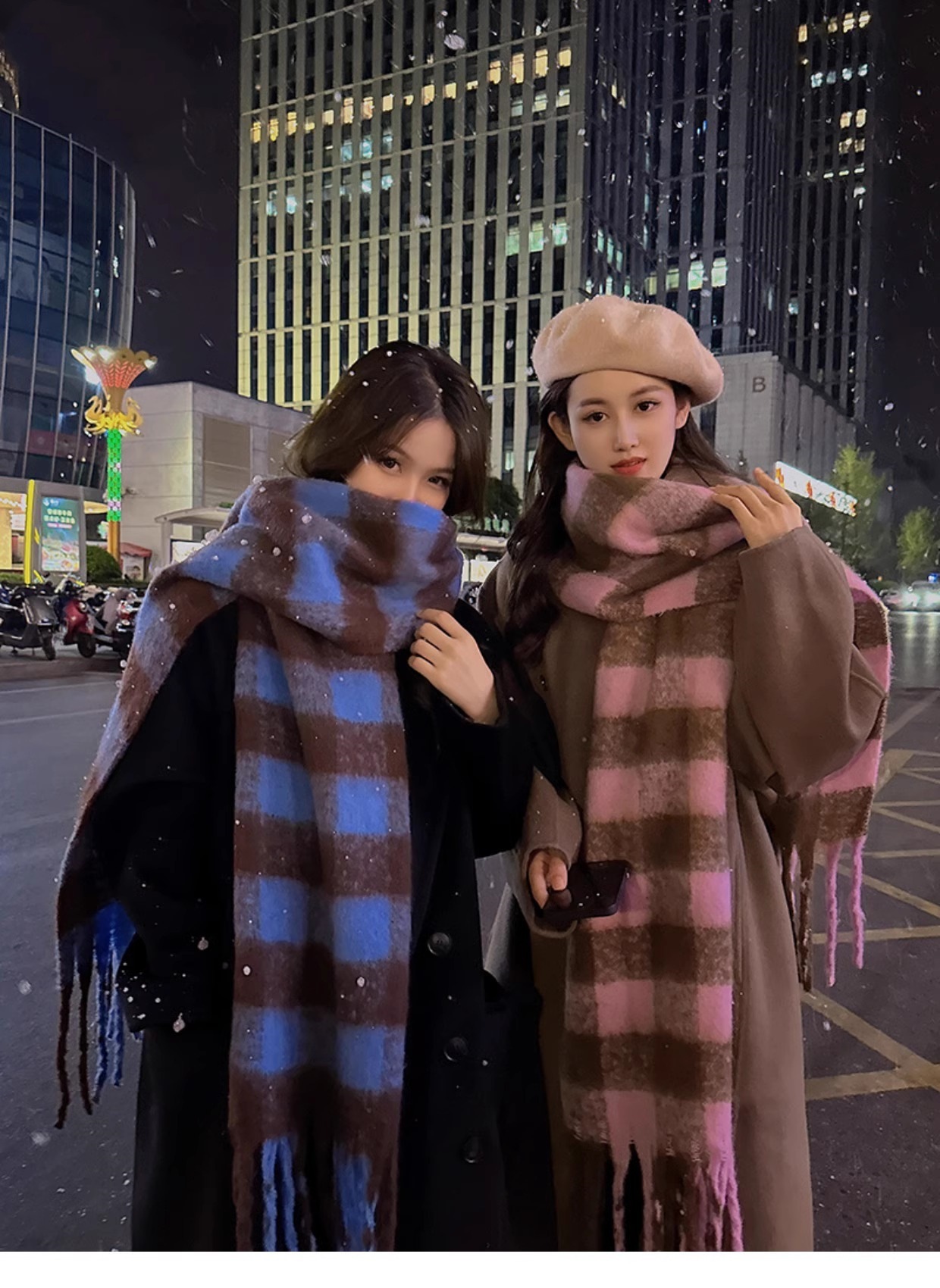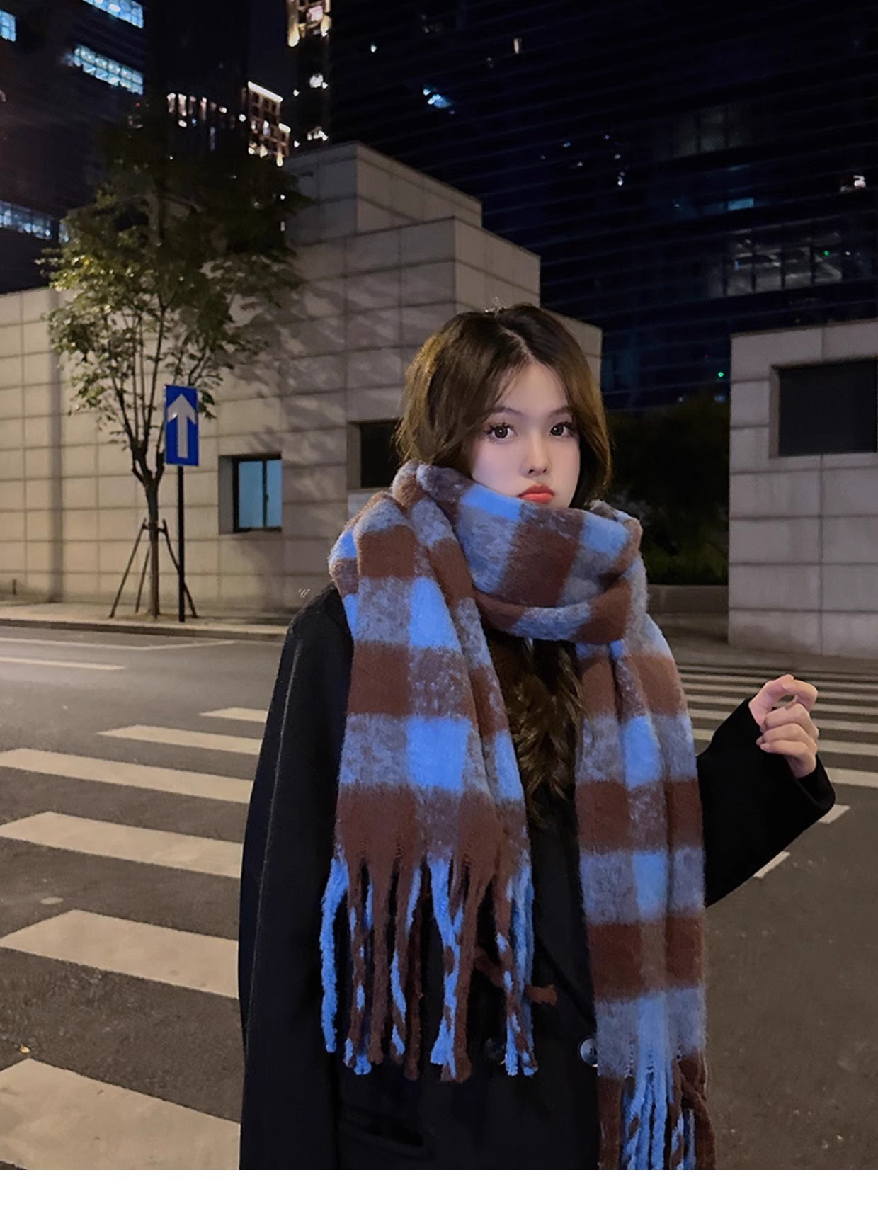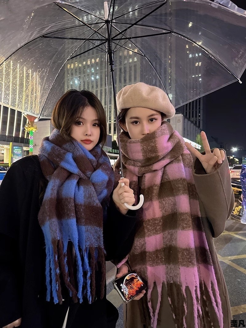 2025秋冬スカーフ レディース 高級感 カップル 韓国風 ショール 学生 女性用 タッセル付き チェック柄 ロングスカーフ 防寒